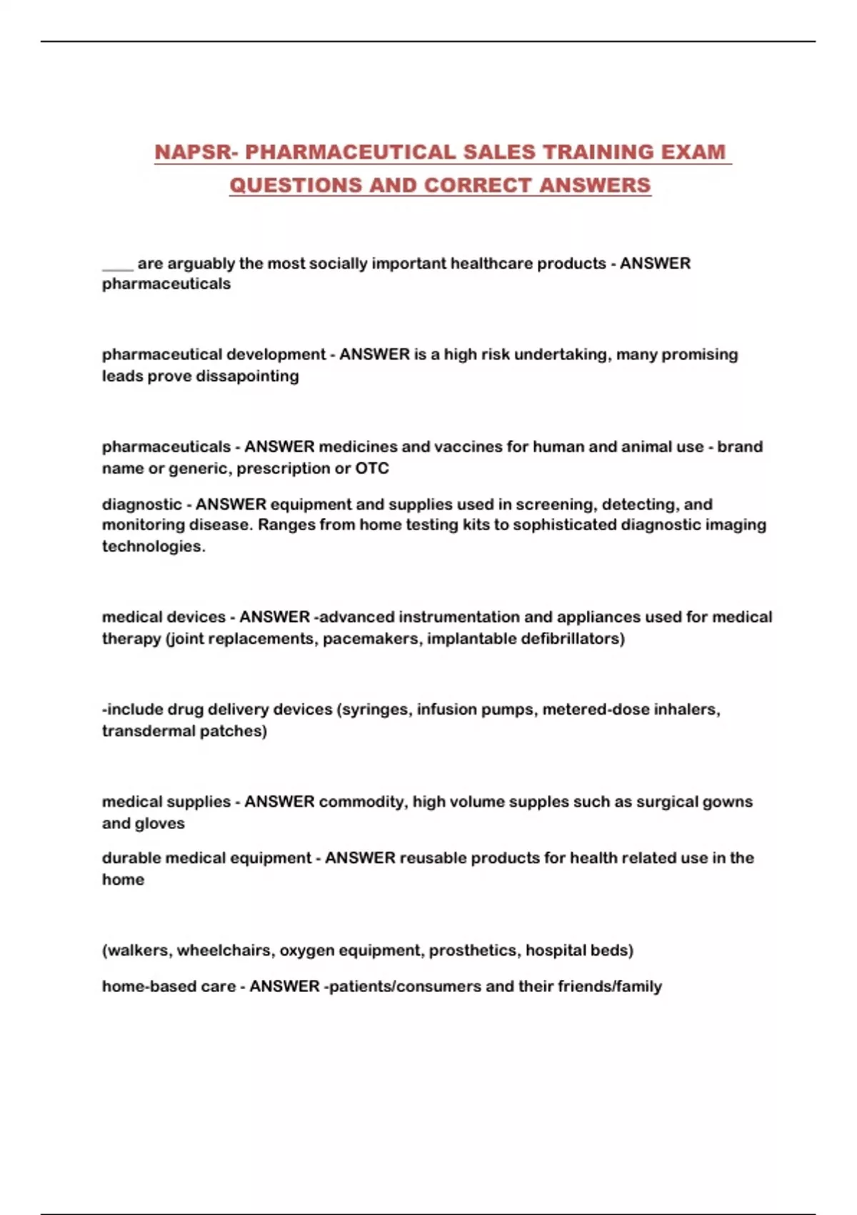 NAPSR- PHARMACEUTICAL SALES TRAINING EXAM QUESTIONS AND CORRECT ANSWERS...