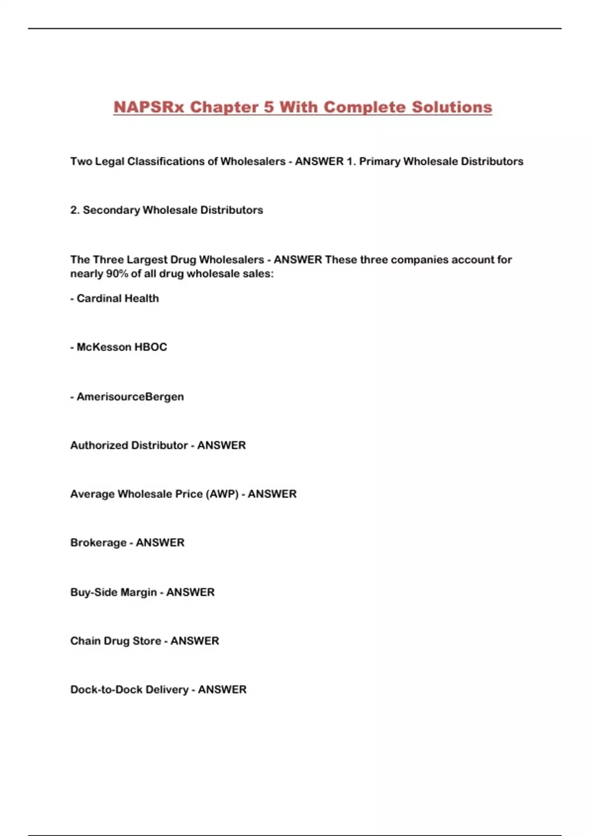 Two Legal Classifications of Wholesalers - ANSWER 1. Primary Wholesale Distributors