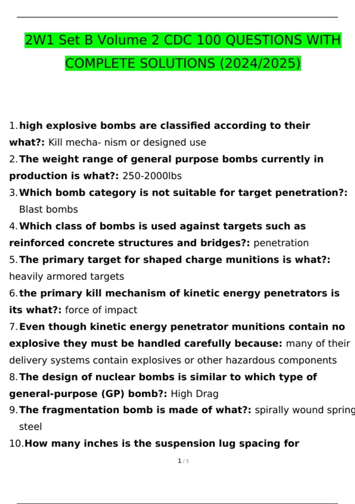 2W1 Set B Volume 2 CDC| 100 QUESTIONS| WITH COMPLETE SOLUTIONS