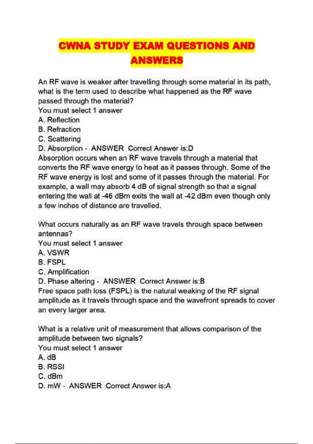 CWNA STUDY EXAM QUESTIONS AND ANSWERS