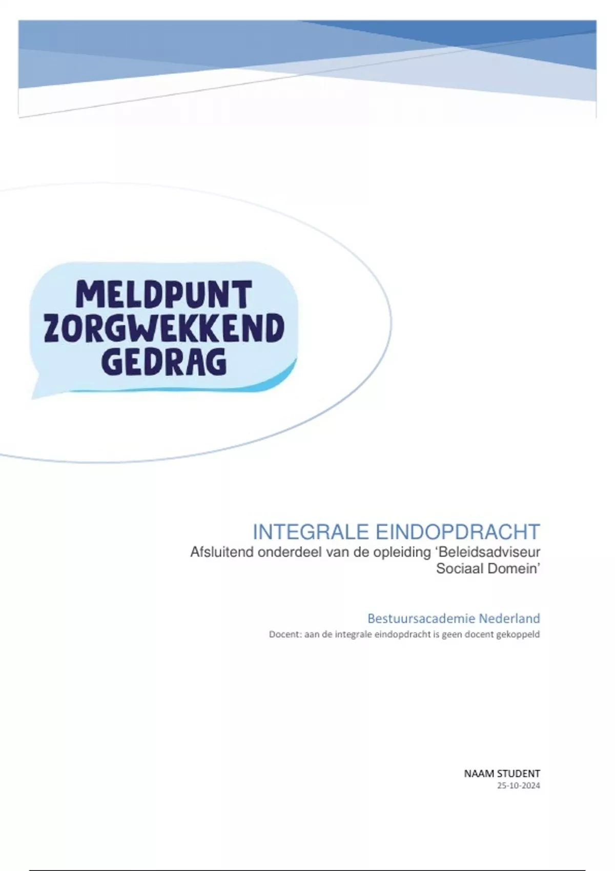 examenopdracht voor de opleiding Beleidsadviseur Sociaal Domein. Mijn naam is