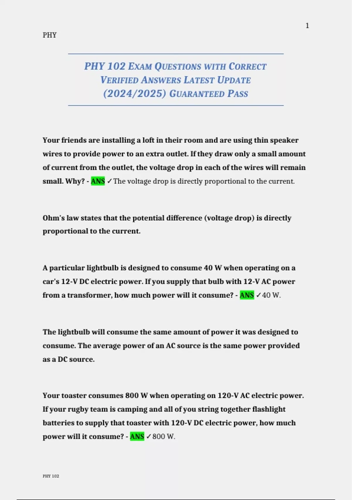 PHY 102 EXAM QUESTIONS WITH CORRECT