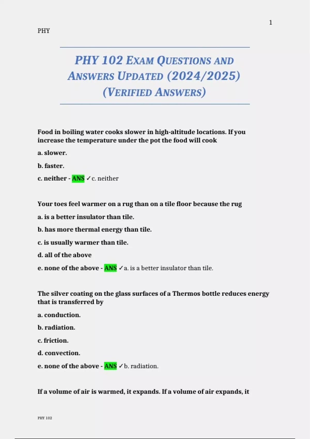 This document contains the complete PHY 102 Exam with verified and up-to-date correct answers for 2025. It covers fundamental physics concepts including kinematics, dynamics, energy, thermodynamics, electricity, magnetism, and wave motion. Ideal for college students preparing for physics exams, lab assessments, or concept reviews, offering accurate and comprehensive solutions for better understanding and performance. PHY 102 EXAM QUESTIONS AND ANSWERS UPDATED (2024/2025) (VERIFIED ANSWERS)PHY 102 EXAM QUESTIONS AND ANSWERS UPDATED (2024/2025) (VERIFIED ANSWERS)PHY 102 EXAM QUESTIONS AND ANSWERS UPDATED (2024/2025) (VERIFIED ANSWERS)PHY 102 EXAM QUESTIONS AND ANSWERS UPDATED (2024/2025) (VERIFIED ANSWERS)PHY 102 EXAM QUESTIONS AND ANSWERS UPDATED (2024/2025) (VERIFIED ANSWERS)PHY 102 EXAM QUESTIONS AND ANSWERS UPDATED (2024/2025) (VERIFIED ANSWERS)PHY 102 EXAM QUESTIONS AND ANSWERS UPDATED (2024/2025) (VERIFIED ANSWERS)PHY 102 EXAM QUESTIONS AND ANSWERS UPDATED (2024/2025) (VERIFIED ANSWERS)PHY 102 EXAM QUESTIONS AND ANSWERS UPDATED (2024/2025) (VERIFIED ANSWERS)PHY 102 EXAM QUESTIONS AND ANSWERS UPDATED (2024/2025) (VERIFIED ANSWERS)PHY 102 EXAM QUESTIONS AND ANSWERS UPDATED (2024/2025) (VERIFIED ANSWERS)PHY 102 EXAM QUESTIONS AND ANSWERS UPDATED (2024/2025) (VERIFIED ANSWERS)PHY 102 EXAM QUESTIONS AND ANSWERS UPDATED (2024/2025) (VERIFIED ANSWERS)PHY 102 EXAM QUESTIONS AND ANSWERS UPDATED (2024/2025) (VERIFIED ANSWERS)PHY 102 EXAM QUESTIONS AND ANSWERS UPDATED (2024/2025) (VERIFIED ANSWERS)PHY 102 EXAM QUESTIONS AND ANSWERS UPDATED (2024/2025) (VERIFIED ANSWERS)PHY 102 EXAM QUESTIONS AND ANSWERS UPDATED (2024/2025) (VERIFIED ANSWERS)PHY 102 EXAM QUESTIONS AND ANSWERS UPDATED (2024/2025) (VERIFIED ANSWERS)PHY 102 EXAM QUESTIONS AND ANSWERS UPDATED (2024/2025) (VERIFIED ANSWERS)PHY 102 EXAM QUESTIONS AND ANSWERS UPDATED (2024/2025) (VERIFIED ANSWERS)PHY 102 EXAM QUESTIONS AND ANSWERS UPDATED (2024/2025) (VERIFIED ANSWERS)PHY 102 EXAM QUESTIONS AND ANSWERS UPDATED (2024/2025) (VERIFIED ANSWERS)PHY 102 EXAM QUESTIONS AND ANSWERS UPDATED (2024/2025) (VERIFIED ANSWERS)PHY 102 EXAM QUESTIONS AND ANSWERS UPDATED (2024/2025) (VERIFIED ANSWERS)PHY 102 EXAM QUESTIONS AND ANSWERS UPDATED (2024/2025) (VERIFIED ANSWERS)PHY 102 EXAM QUESTIONS AND ANSWERS UPDATED (2024/2025) (VERIFIED ANSWERS)PHY 102 EXAM QUESTIONS AND ANSWERS UPDATED (2024/2025) (VERIFIED ANSWERS)PHY 102 EXAM QUESTIONS AND ANSWERS UPDATED (2024/2025) (VERIFIED ANSWERS)PHY 102 EXAM QUESTIONS AND ANSWERS UPDATED (2024/2025) (VERIFIED ANSWERS)PHY 102 EXAM QUESTIONS AND ANSWERS UPDATED (2024/2025) (VERIFIED ANSWERS)PHY 102 EXAM QUESTIONS AND ANSWERS UPDATED (2024/2025) (VERIFIED ANSWERS)PHY 102 EXAM QUESTIONS AND ANSWERS UPDATED (2024/2025) (VERIFIED ANSWERS)PHY 102 EXAM QUESTIONS AND ANSWERS UPDATED (2024/2025) (VERIFIED ANSWERS)PHY 102 EXAM QUESTIONS AND ANSWERS UPDATED (2024/2025) (VERIFIED ANSWERS)PHY 102 EXAM QUESTIONS AND ANSWERS UPDATED (2024/2025) (VERIFIED ANSWERS)PHY 102 EXAM QUESTIONS AND ANSWERS UPDATED (2024/2025) (VERIFIED ANSWERS)PHY 102 EXAM QUESTIONS AND ANSWERS UPDATED (2024/2025) (VERIFIED ANSWERS)PHY 102 EXAM QUESTIONS AND ANSWERS UPDATED (2024/2025) (VERIFIED ANSWERS)PHY 102 EXAM QUESTIONS AND ANSWERS UPDATED (2024/2025) (VERIFIED ANSWERS)PHY 102 EXAM QUESTIONS AND ANSWERS UPDATED (2024/2025) (VERIFIED ANSWERS)PHY 102 EXAM QUESTIONS AND ANSWERS UPDATED (2024/2025) (VERIFIED ANSWERS)PHY 102 EXAM QUESTIONS AND ANSWERS UPDATED (2024/2025) (VERIFIED ANSWERS)PHY 102 EXAM QUESTIONS AND ANSWERS UPDATED (2024/2025) (VERIFIED ANSWERS)PHY 102 EXAM QUESTIONS AND ANSWERS UPDATED (2024/2025) (VERIFIED ANSWERS)PHY 102 EXAM QUESTIONS AND ANSWERS UPDATED (2024/2025) (VERIFIED ANSWERS)PHY 102 EXAM QUESTIONS AND ANSWERS UPDATED (2024/2025) (VERIFIED ANSWERS)PHY 102 EXAM QUESTIONS AND ANSWERS UPDATED (2024/2025) (VERIFIED ANSWERS)PHY 102 EXAM QUESTIONS AND ANSWERS UPDATED (2024/2025) (VERIFIED ANSWERS)PHY 102 EXAM QUESTIONS AND ANSWERS UPDATED (2024/2025) (VERIFIED ANSWERS)PHY 102 EXAM QUESTIONS AND ANSWERS UPDATED (2024/2025) (VERIFIED ANSWERS)PHY 102 EXAM QUESTIONS AND ANSWERS UPDATED (2024/2025) (VERIFIED ANSWERS)PHY 102 EXAM QUESTIONS AND ANSWERS UPDATED (2024/2025) (VERIFIED ANSWERS)PHY 102 EXAM QUESTIONS AND ANSWERS UPDATED (2024/2025) (VERIFIED ANSWERS)PHY 102 EXAM QUESTIONS AND ANSWERS UPDATED (2024/2025) (VERIFIED ANSWERS)PHY 102 EXAM QUESTIONS AND ANSWERS UPDATED (2024/2025) (VERIFIED ANSWERS)PHY 102 EXAM QUESTIONS AND ANSWERS UPDATED (2024/2025) (VERIFIED ANSWERS)PHY 102 EXAM QUESTIONS AND ANSWERS UPDATED (2024/2025) (VERIFIED ANSWERS)PHY 102 EXAM QUESTIONS AND ANSWERS UPDATED (2024/2025) (VERIFIED ANSWERS)PHY 102 EXAM QUESTIONS AND ANSWERS UPDATED (2024/2025) (VERIFIED ANSWERS)PHY 102 EXAM QUESTIONS AND ANSWERS UPDATED (2024/2025) (VERIFIED ANSWERS)PHY 102 EXAM QUESTIONS AND ANSWERS UPDATED (2024/2025) (VERIFIED ANSWERS)PHY 102 EXAM QUESTIONS AND ANSWERS UPDATED (2024/2025) (VERIFIED ANSWERS)PHY 102 EXAM QUESTIONS AND ANSWERS UPDATED (2024/2025) (VERIFIED ANSWERS)PHY 102 EXAM QUESTIONS AND ANSWERS UPDATED (2024/2025) (VERIFIED ANSWERS)PHY 102 EXAM QUESTIONS AND ANSWERS UPDATED (2024/2025) (VERIFIED ANSWERS)PHY 102 EXAM QUESTIONS AND ANSWERS UPDATED (2024/2025) (VERIFIED ANSWERS)PHY 102 EXAM QUESTIONS AND ANSWERS UPDATED (2024/2025) (VERIFIED ANSWERS)PHY 102 EXAM QUESTIONS AND ANSWERS UPDATED (2024/2025) (VERIFIED ANSWERS)PHY 102 EXAM QUESTIONS AND ANSWERS UPDATED (2024/2025) (VERIFIED ANSWERS)PHY 102 EXAM QUESTIONS AND ANSWERS UPDATED (2024/2025) (VERIFIED ANSWERS)PHY 102 EXAM QUESTIONS AND ANSWERS UPDATED (2024/2025) (VERIFIED ANSWERS)PHY 102 EXAM QUESTIONS AND ANSWERS UPDATED (2024/2025) (VERIFIED ANSWERS)PHY 102 EXAM QUESTIONS AND ANSWERS UPDATED (2024/2025) (VERIFIED ANSWERS)PHY 102 EXAM QUESTIONS AND ANSWERS UPDATED (2024/2025) (VERIFIED ANSWERS)PHY 102 EXAM QUESTIONS AND ANSWERS UPDATED (2024/2025) (VERIFIED ANSWERS)PHY 102 EXAM QUESTIONS AND ANSWERS UPDATED (2024/2025) (VERIFIED ANSWERS)PHY 102 EXAM QUESTIONS AND ANSW