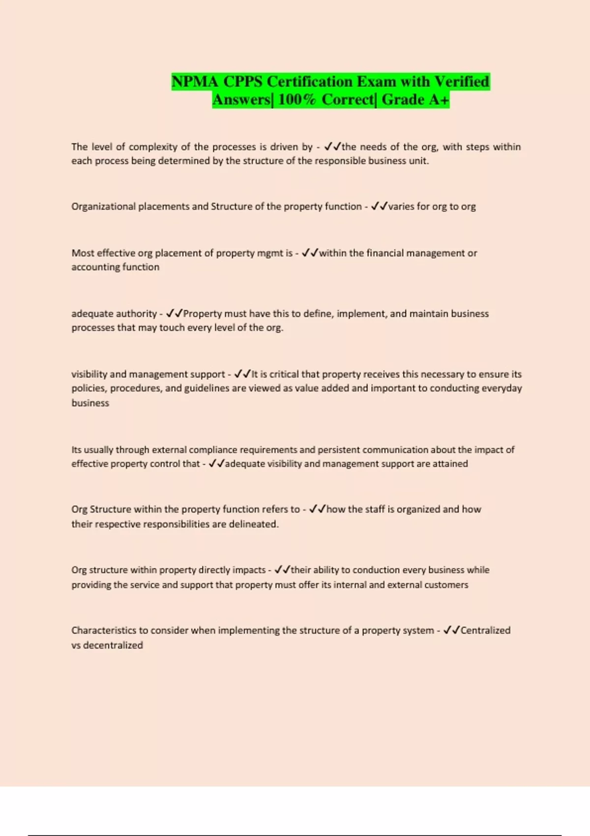 NPMA CPPS Certification Exam with Verified Answers| 100% Correct| Grade A+