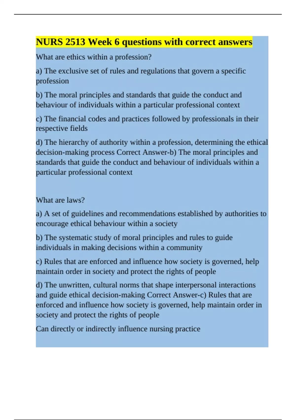 and guide ethical decision-making Correct Answer-c) Rules that are