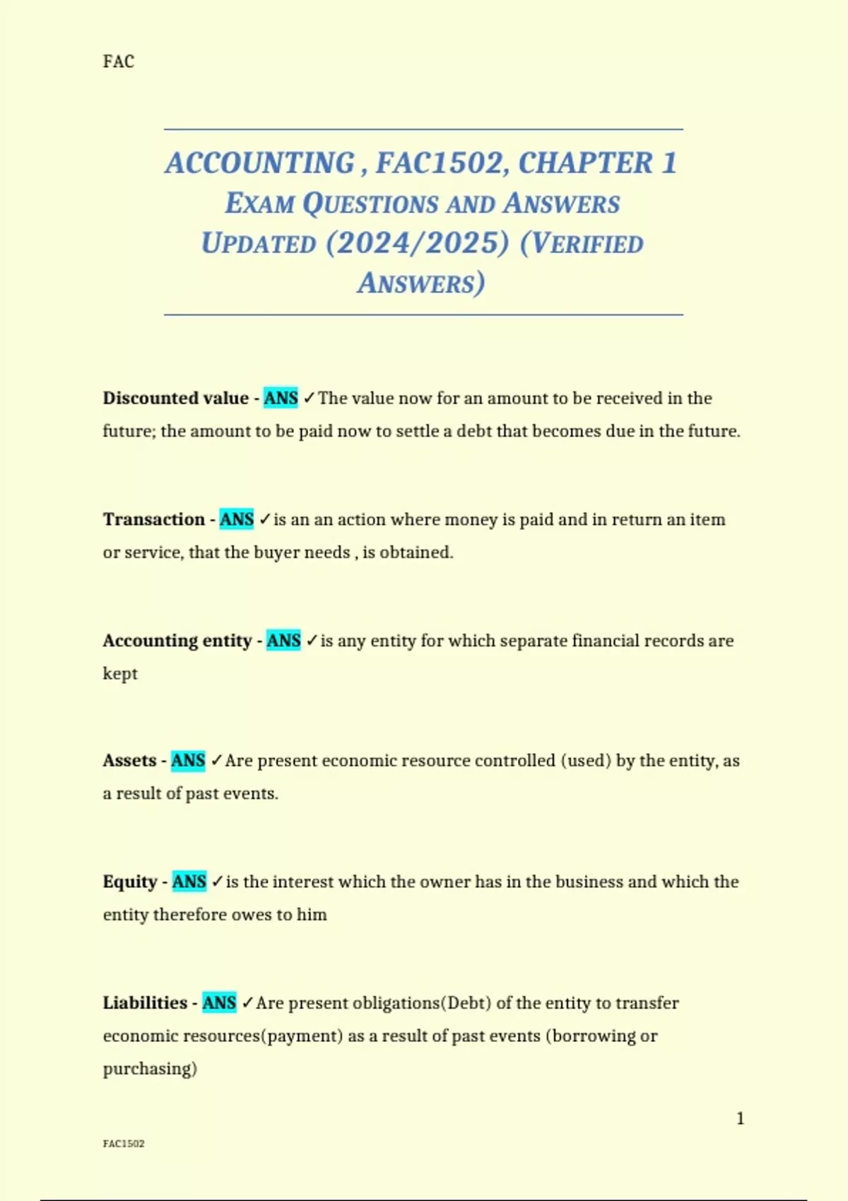 Assets - ANS ✓Are present economic resource controlled (used) by the entity, as