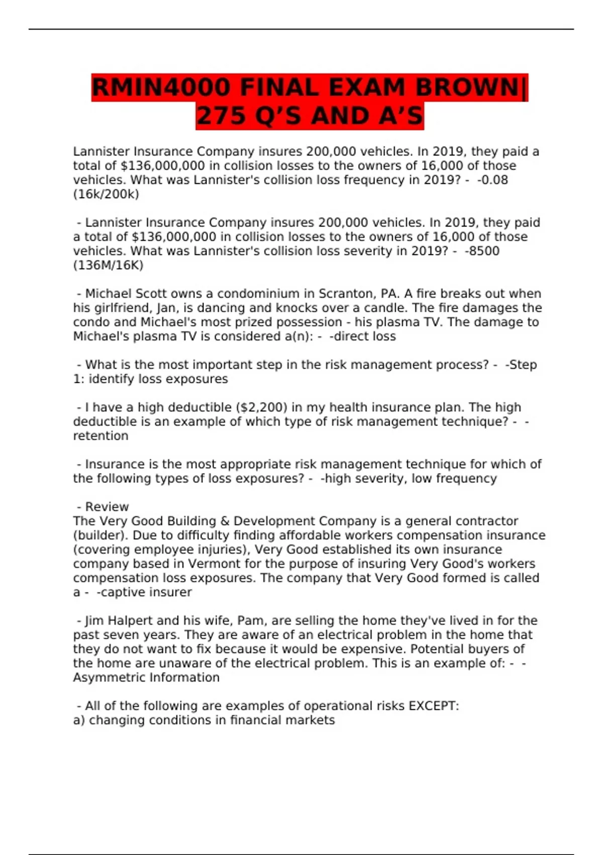 RMIN4000 FINAL EXAM BROWN|
