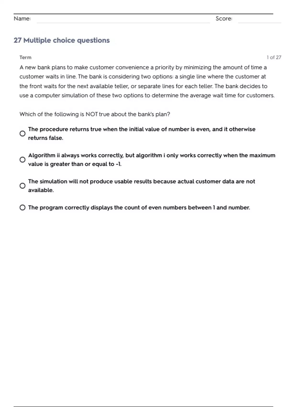 Name: Score: