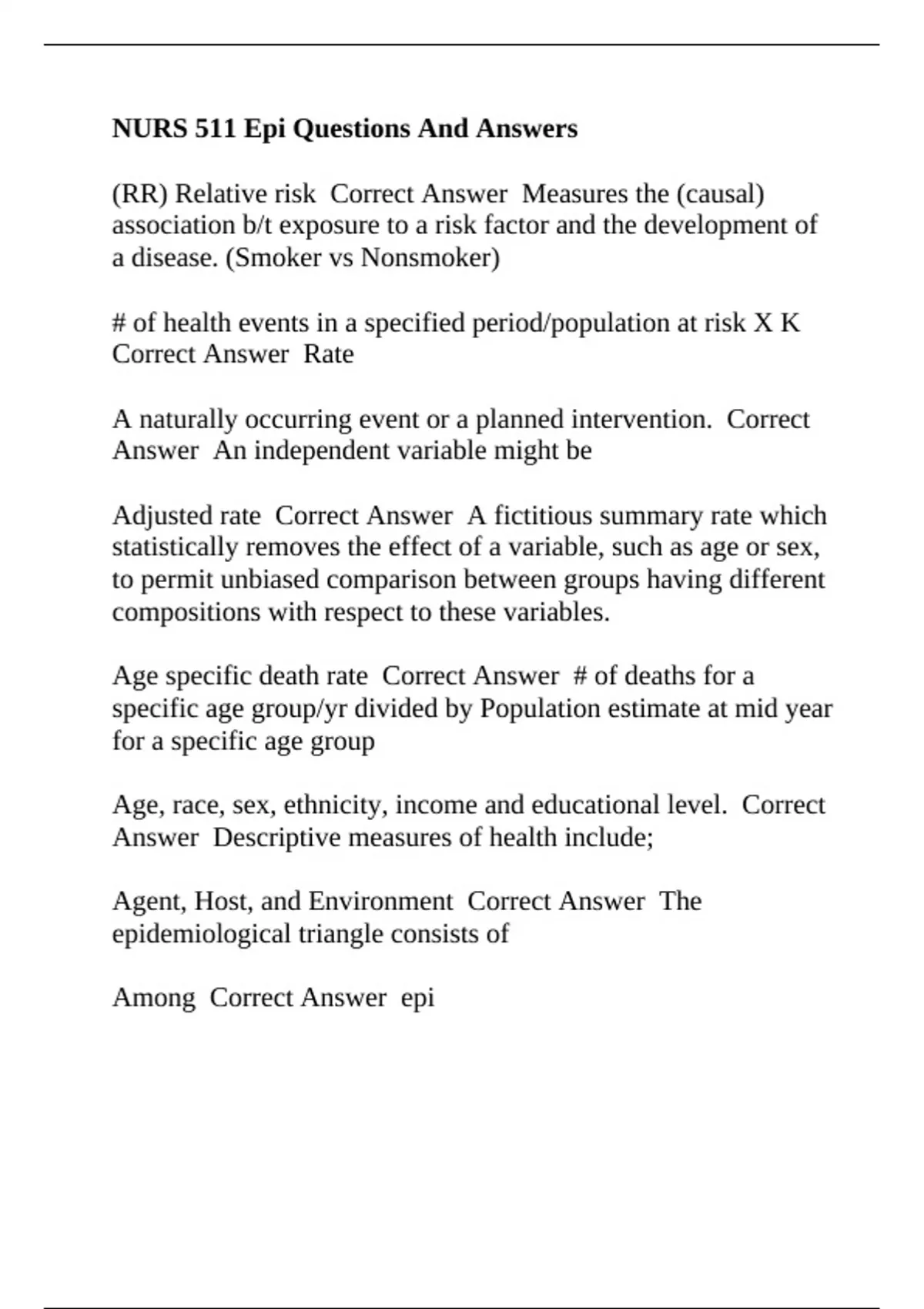 NURS 511 Epi Questions And Answers