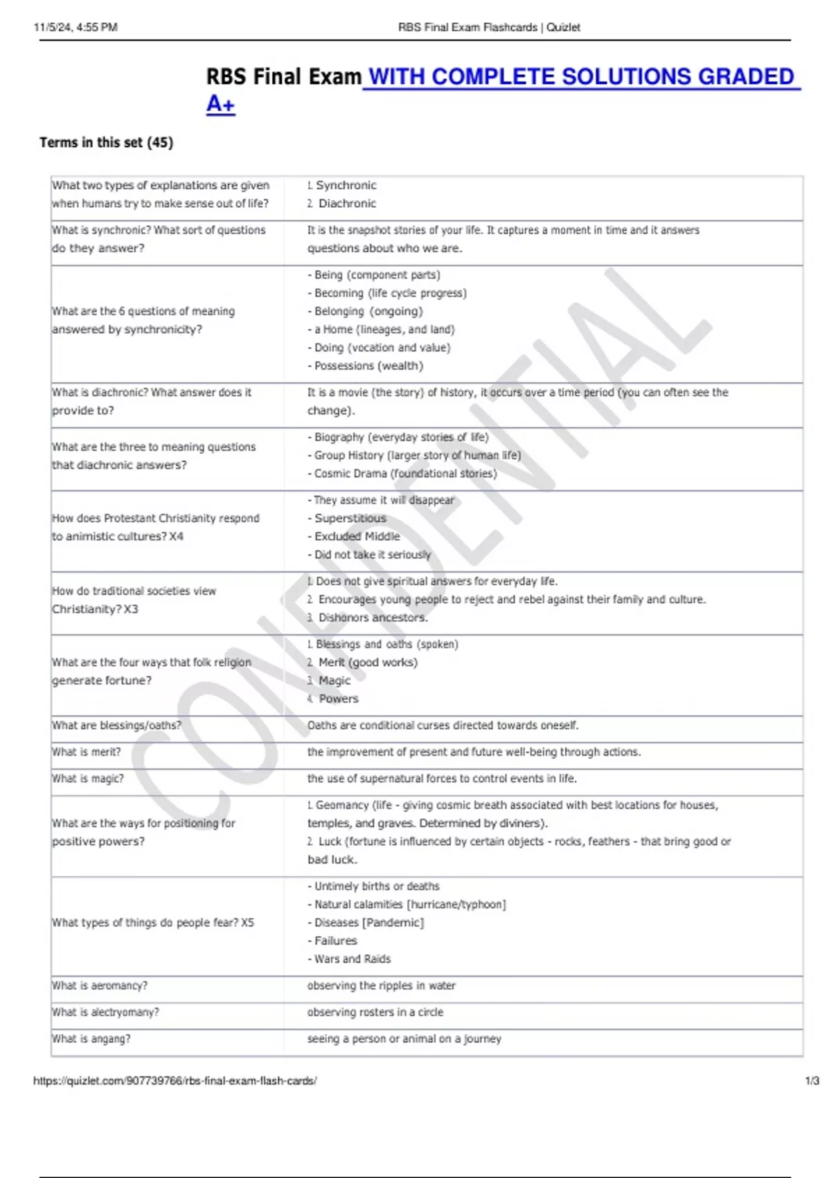 RBS Final Exam WITH COMPLETE SOLUTIONS GRADED