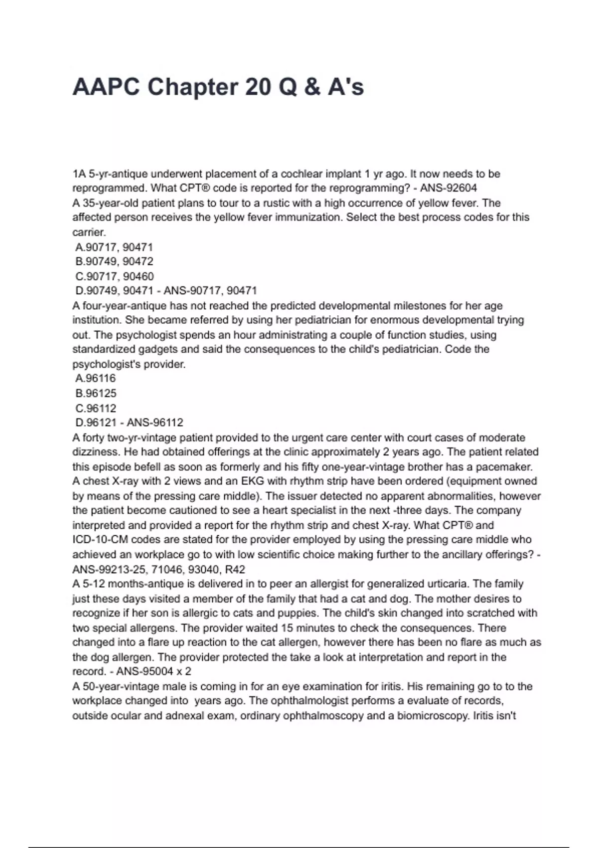 AAPC Chapter 20 Q & A's QUESTIONS AND CORRECT ANSWERS(VERIFIED ANSWERS)|A+ GRADE 2025/2026