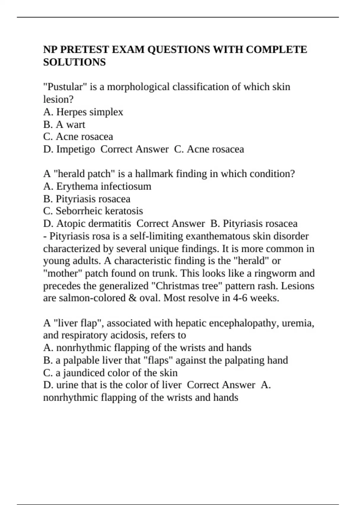 D. Atopic dermatitis Correct Answer B. Pityriasis rosacea