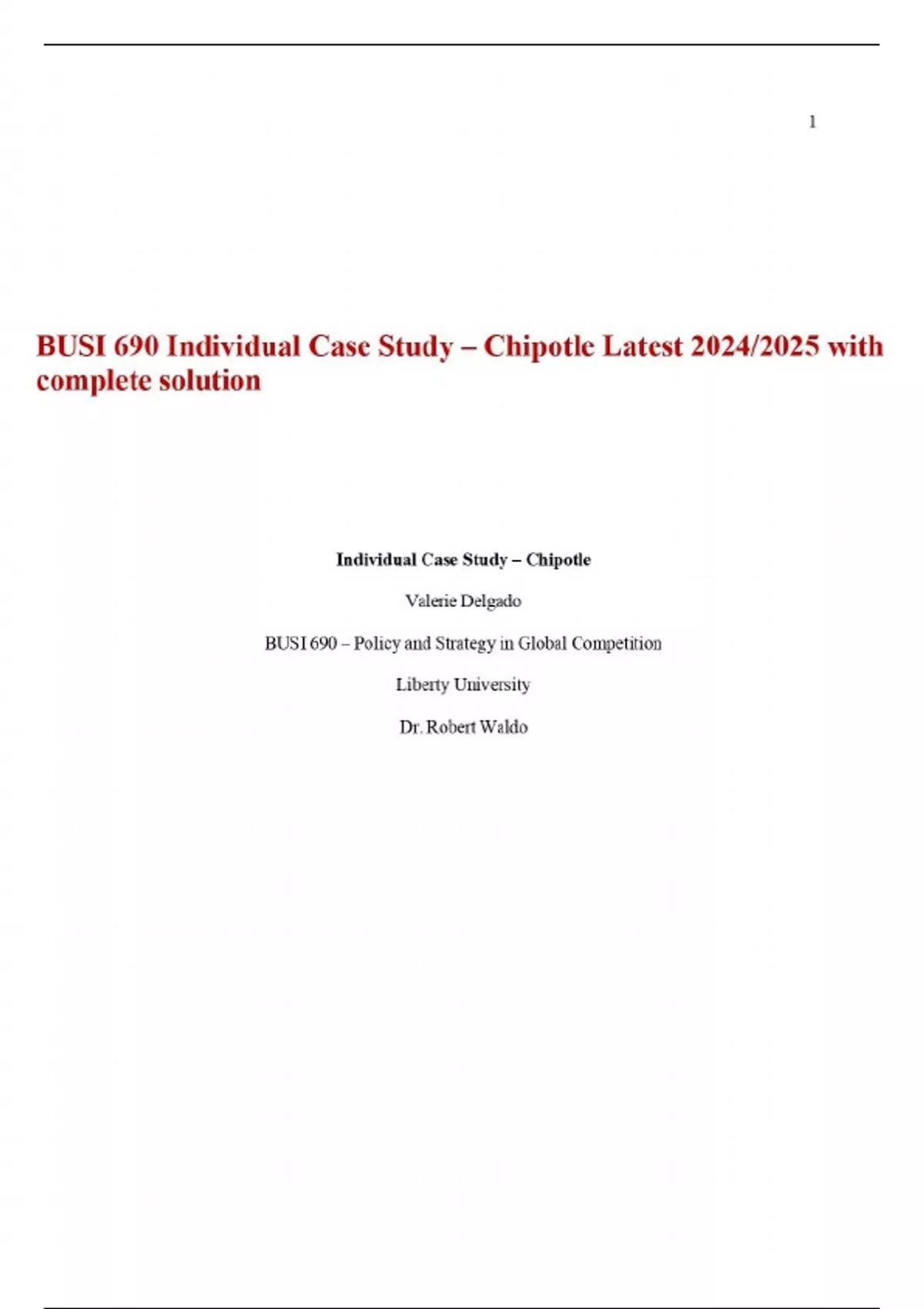 BUSI 690 Individual Case Study – Chipotle Latest 2024/2025 with complete solution
