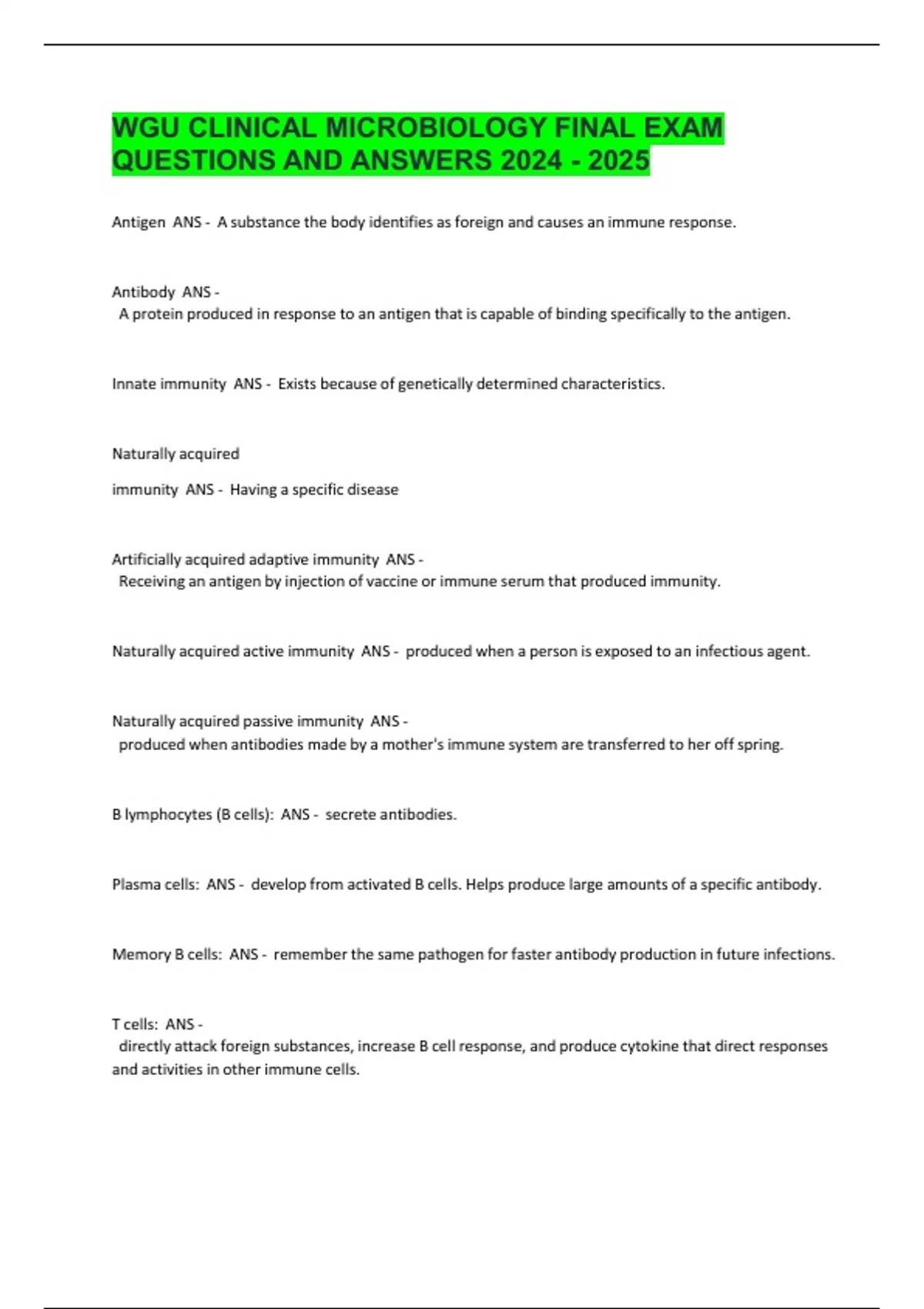 Antigen,,ANS,-,,A,substance,the,body,identifies,as,foreign,and,causes,an,immune,response.
