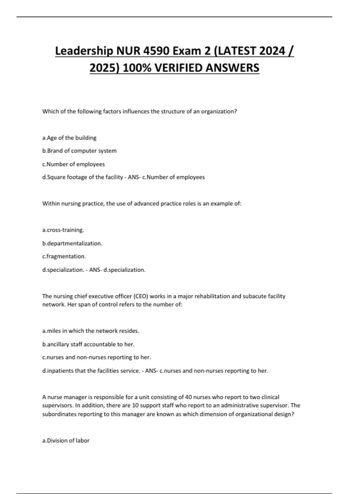 A nurse manager is responsible for a unit consisting of 40 nurses who report to two clinical