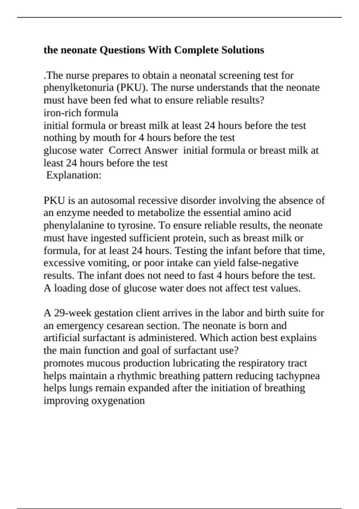phenylalanine to tyrosine. To ensure reliable results, the neonate