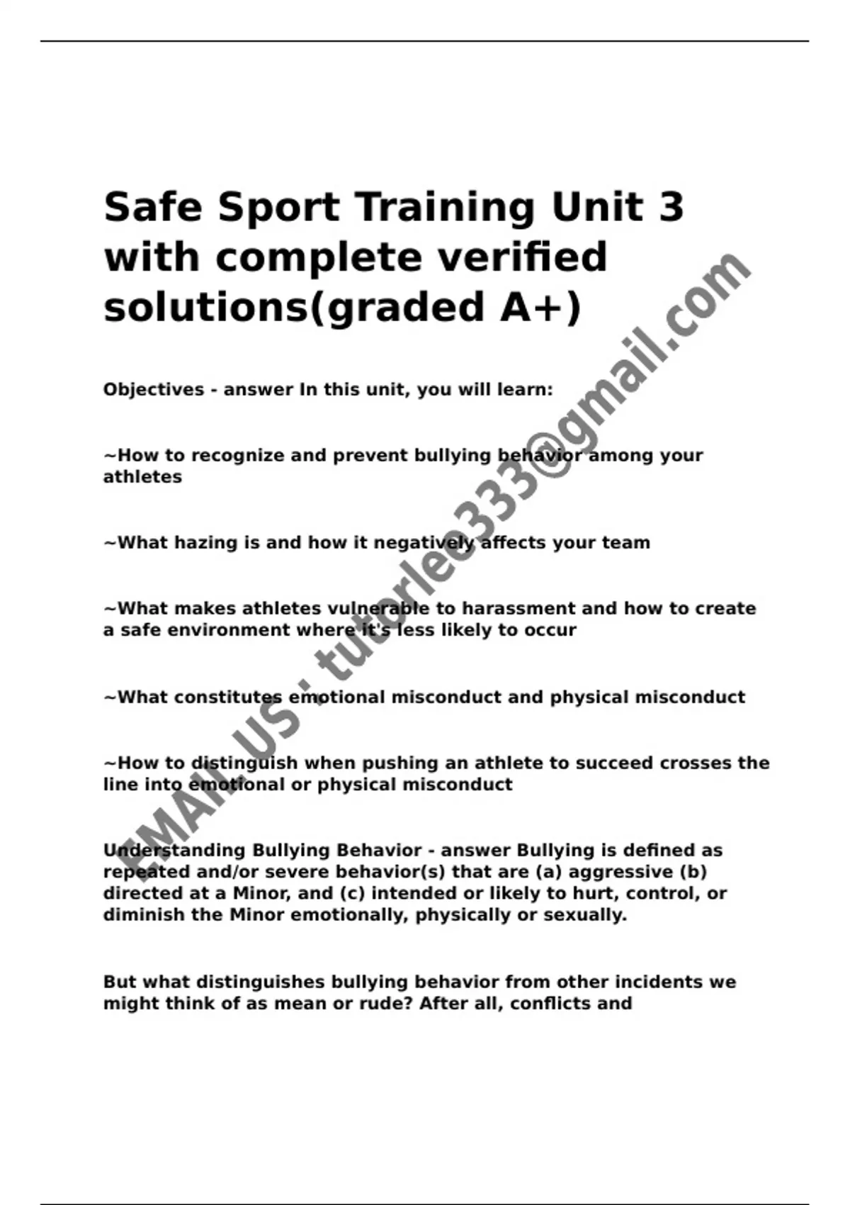 Understanding Bullying Behavior - answer Bullying is defined as