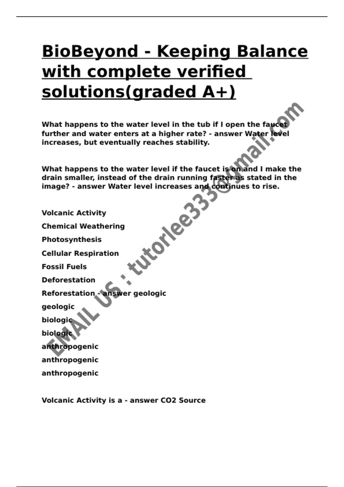 BioBeyond - Keeping Balance with complete verified solutions(graded A+).