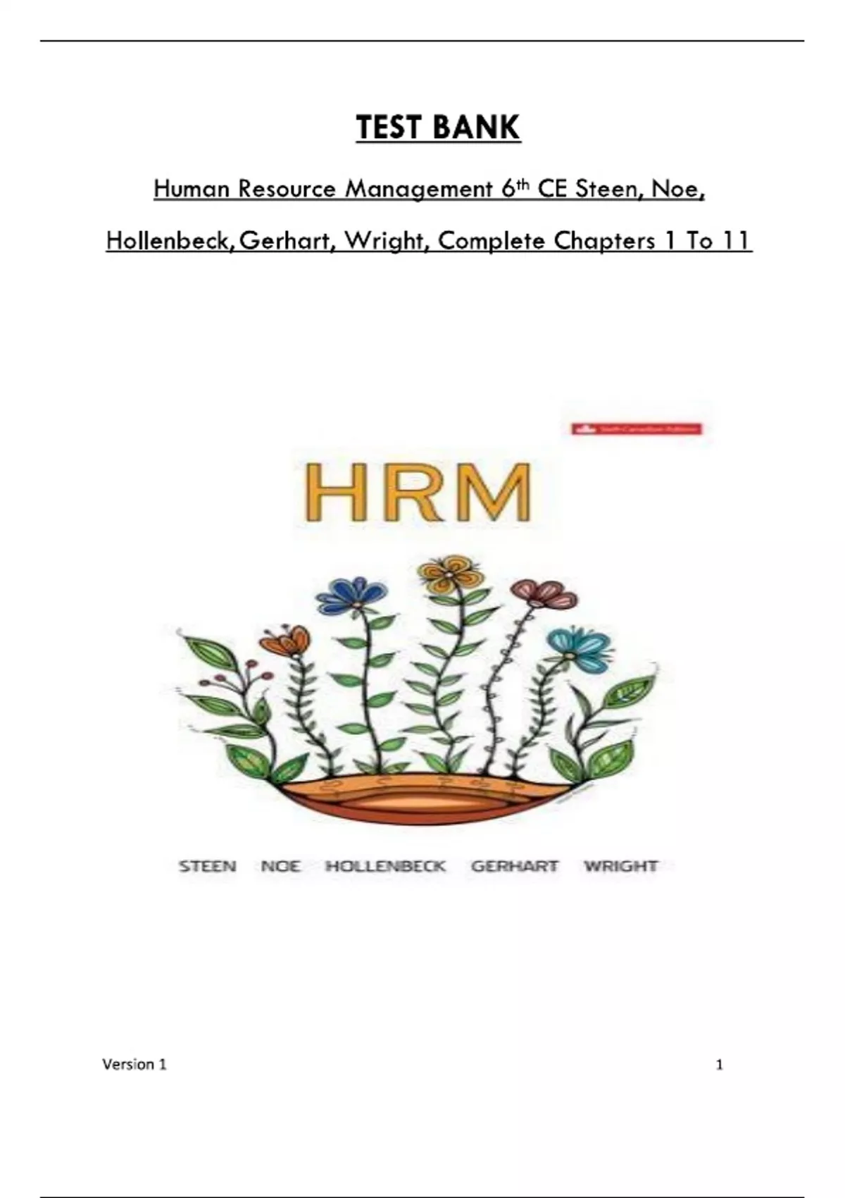 Test Bank For Human Resource Management 6th CE Steen, Noe, Hollenbeck,Gerhart, Wright, Consists Of 11 Complete Chapters, ISBN: 9781260881226