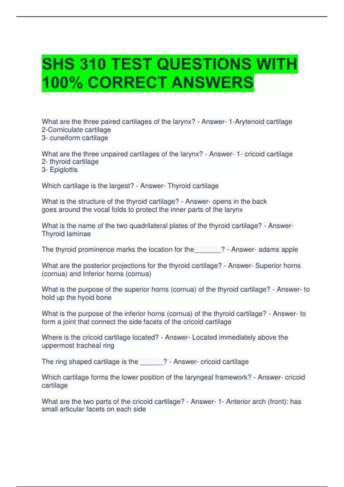 Which cartilage is the largest? - Answer- Thyroid cartilage
