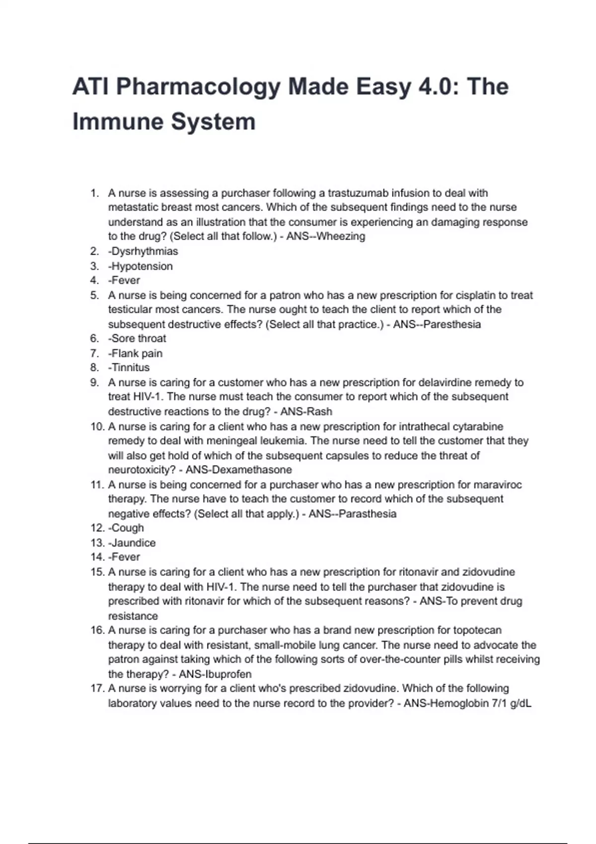 1. A nurse is assessing a purchaser following a trastuzumab infusion to deal with