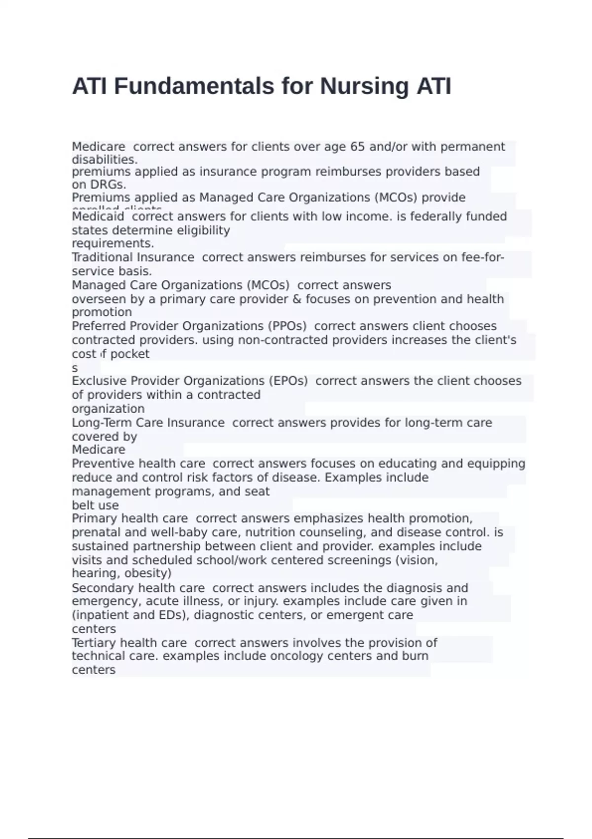 Continuing health care correct answers designed to address long-term
