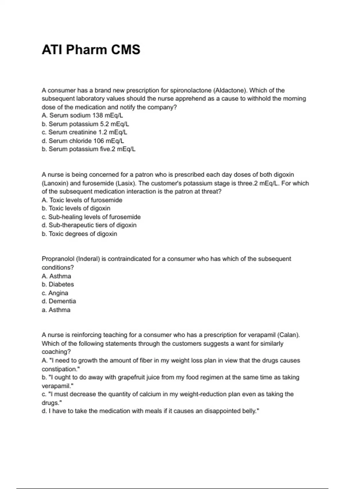 (Lanoxin) and furosemide (Lasix). The customer's potassium stage is three.2 mEq/L. For which