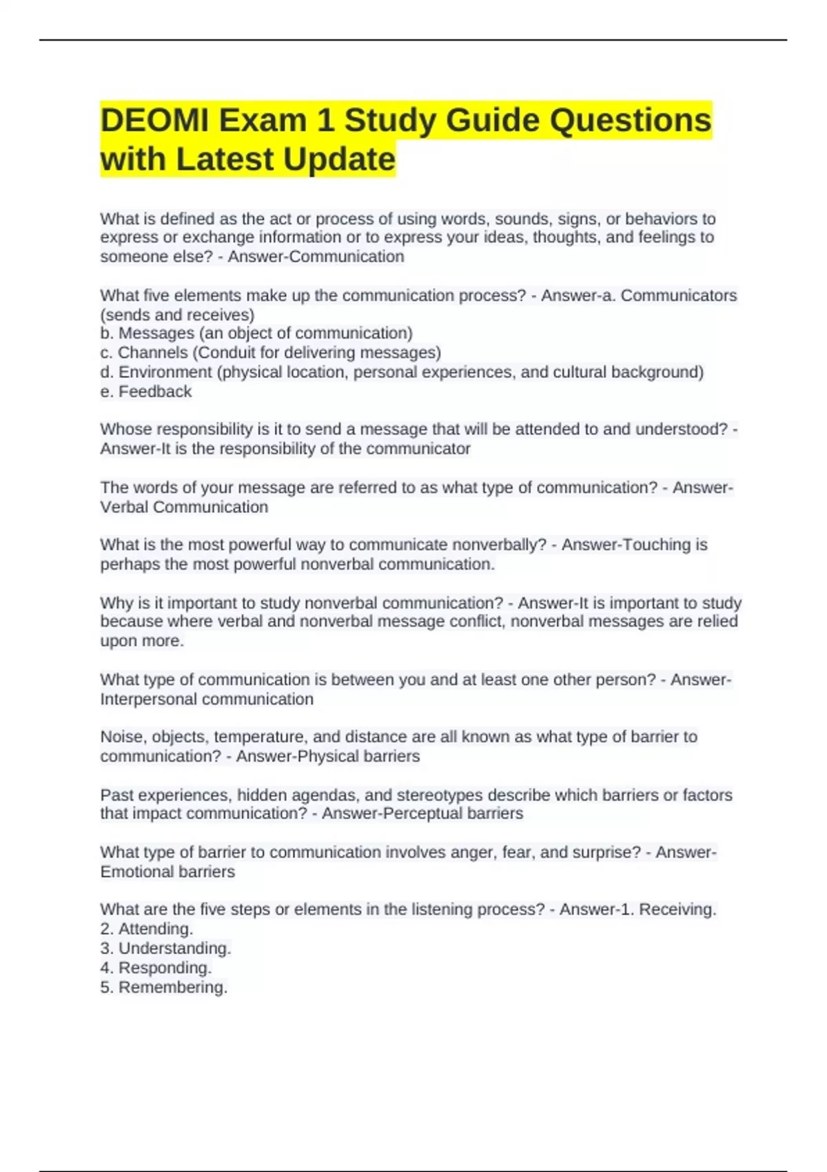 What five elements make up the communication process? - Answer-a. Communicators