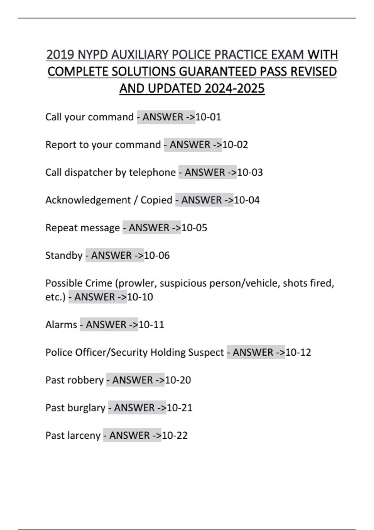 2019 NYPD AUXILIARY POLICE PRACTICE EXAM WITH
