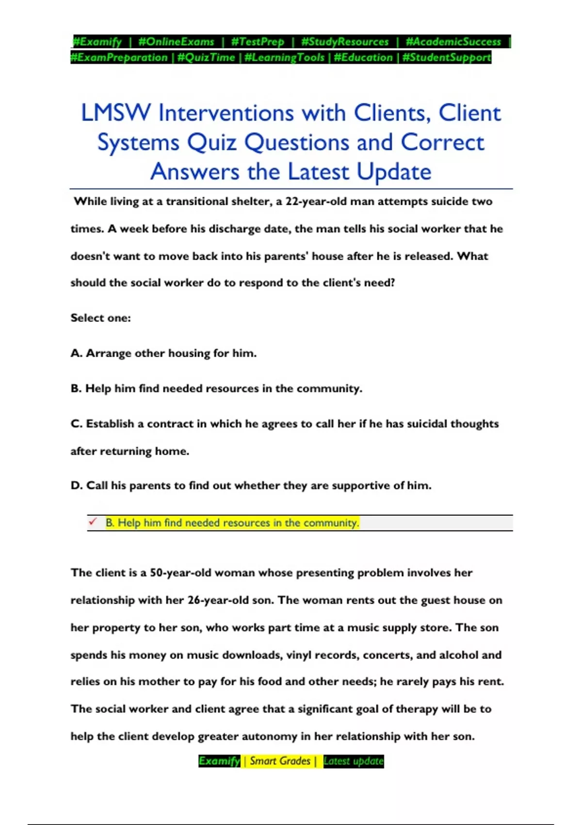 LMSW Interventions with Clients, Client