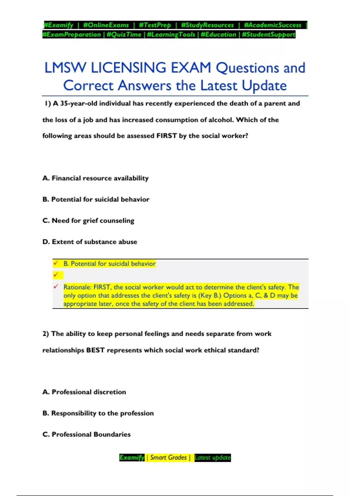LMSW LICENSING EXAM Questions and