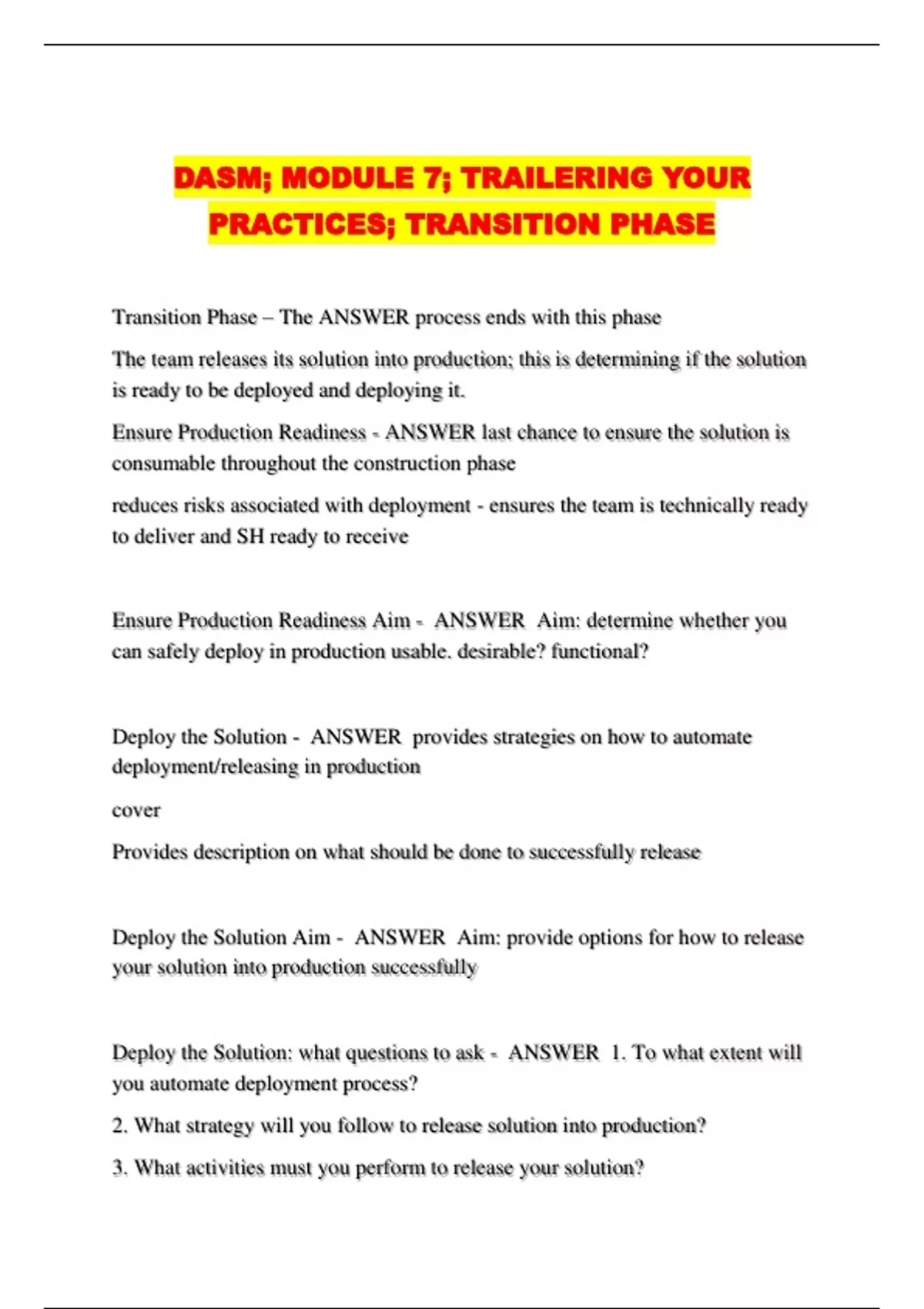 Ensure Production Readiness - ANSWER last chance to ensure the solution is