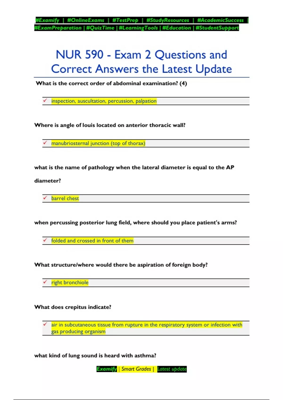 NUR 590 - Exam 2 Questions and