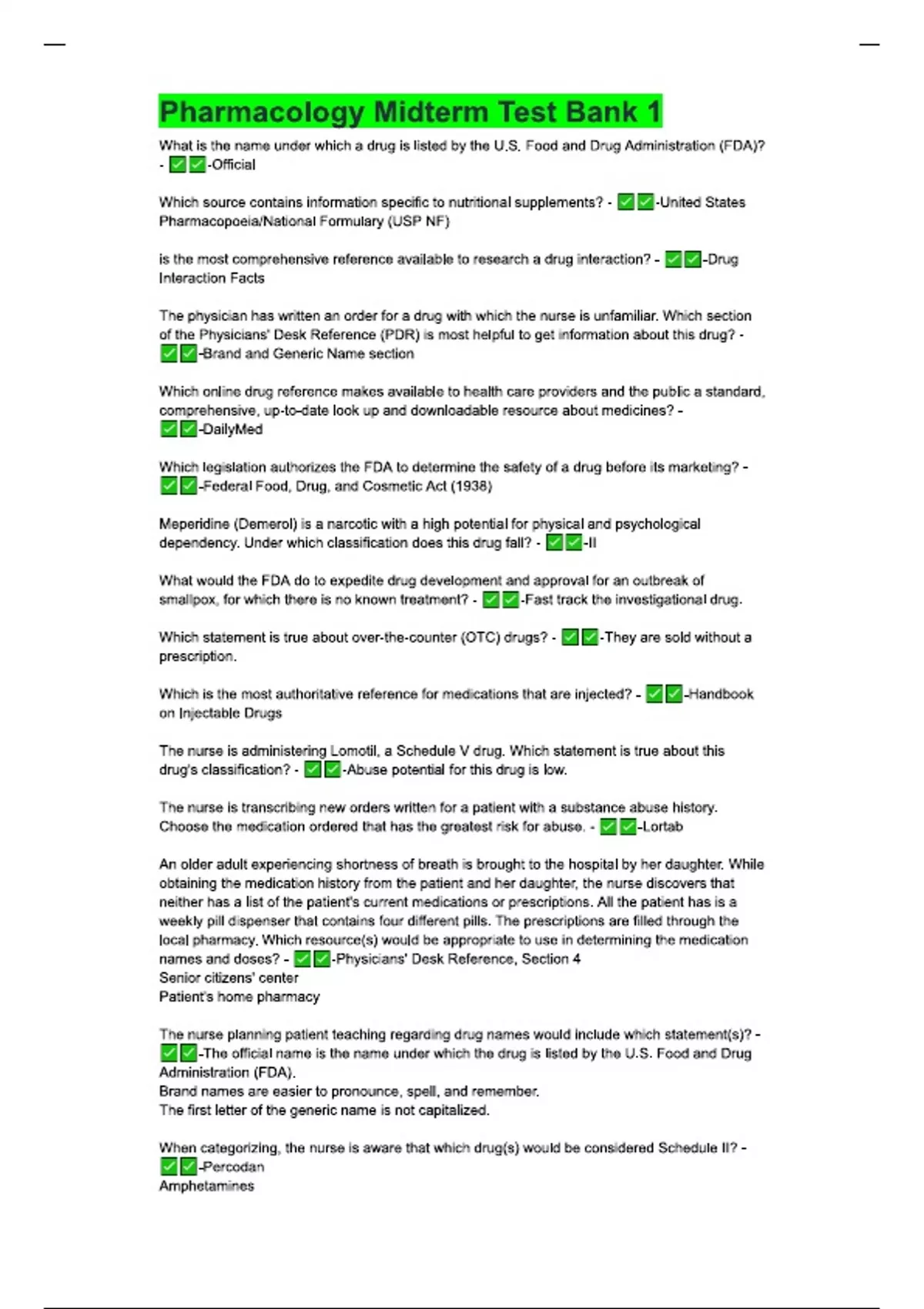 Pharmacology Midterm Test Bank 1 Questions and answers 2024.