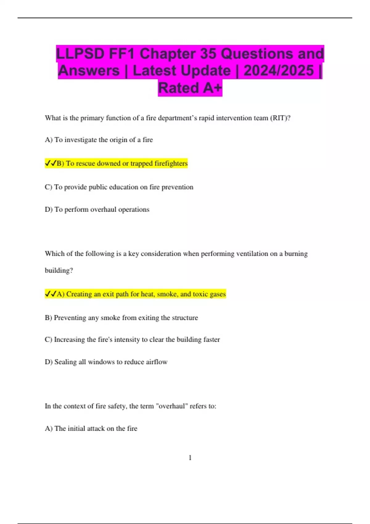 ✔✔A) Creating an exit path for heat, smoke, and toxic gases
