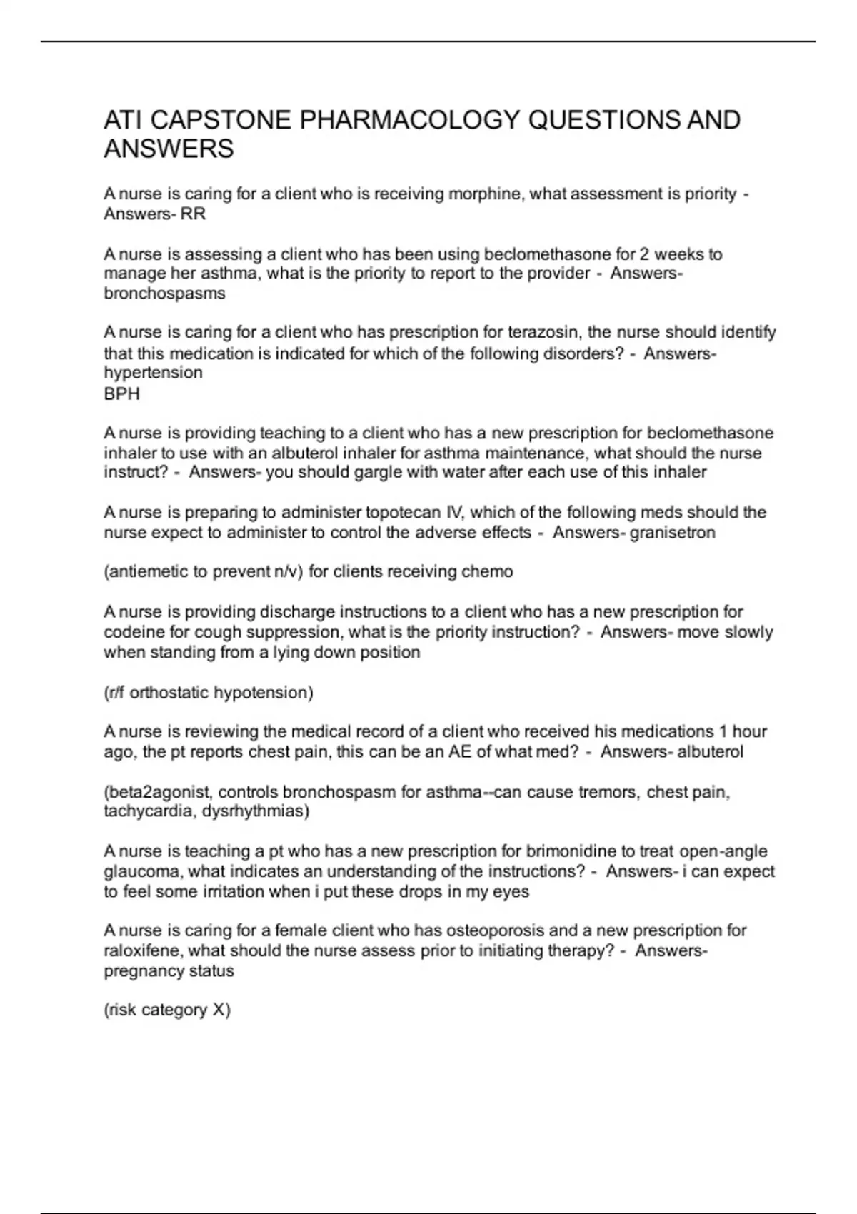 ATI CAPSTONE PHARMACOLOGY QUESTIONS AND
