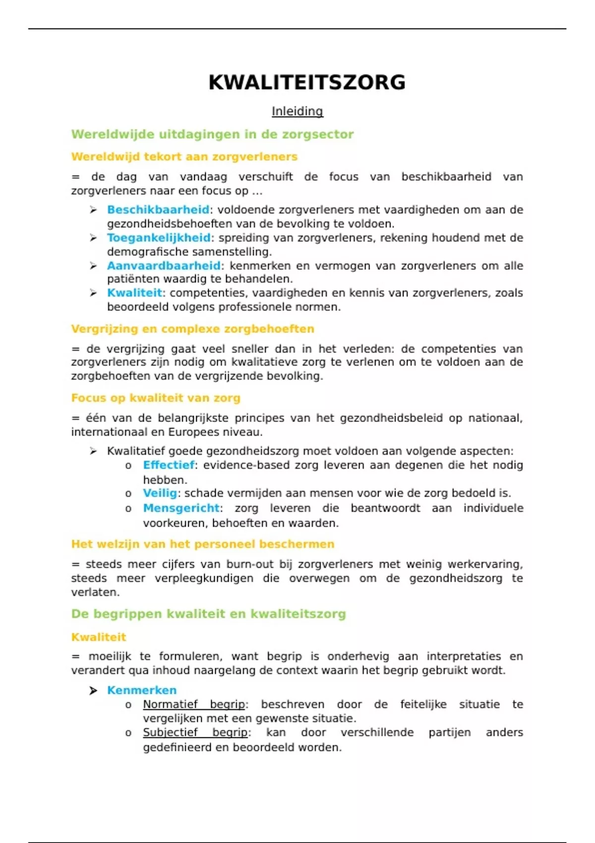 Samenvatting van het hoorcollege over kwaliteitszorg.