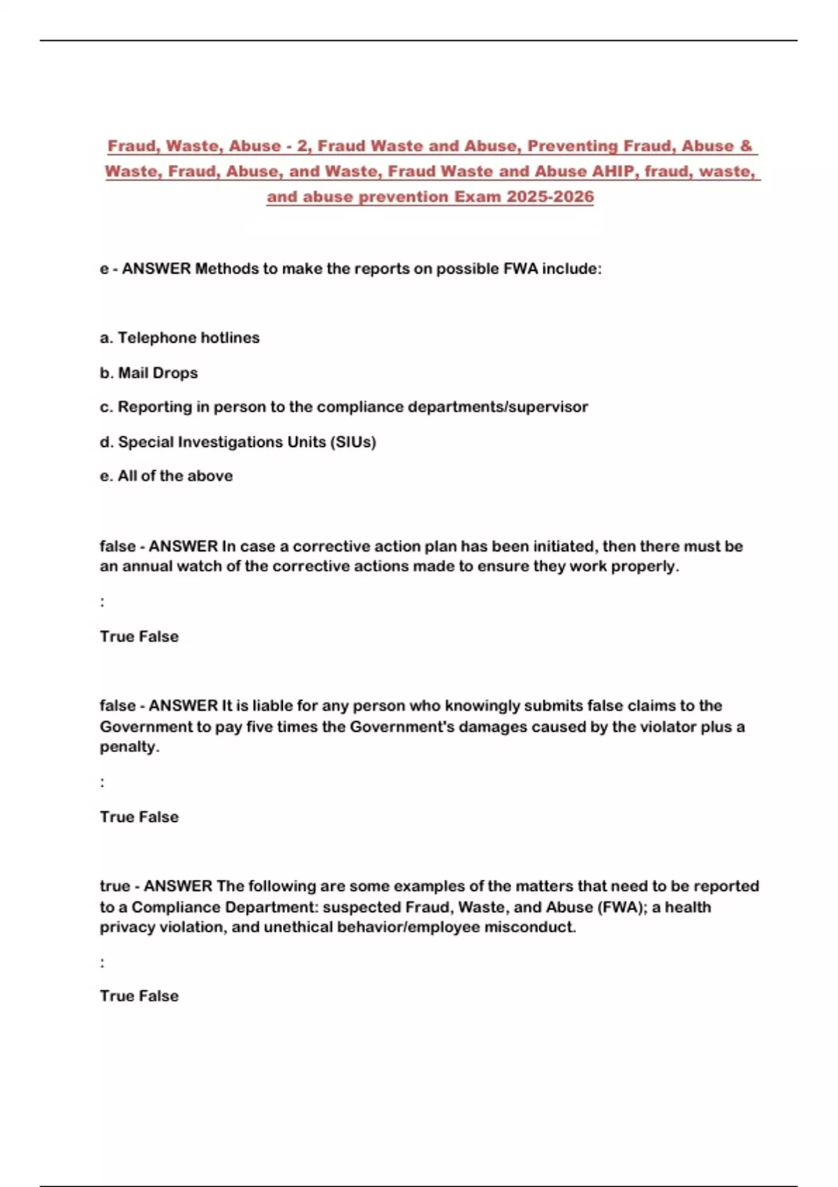 Ways to report potential Fraud, Waste, and Abuse (FWA) include: - ANSWER e. All of the