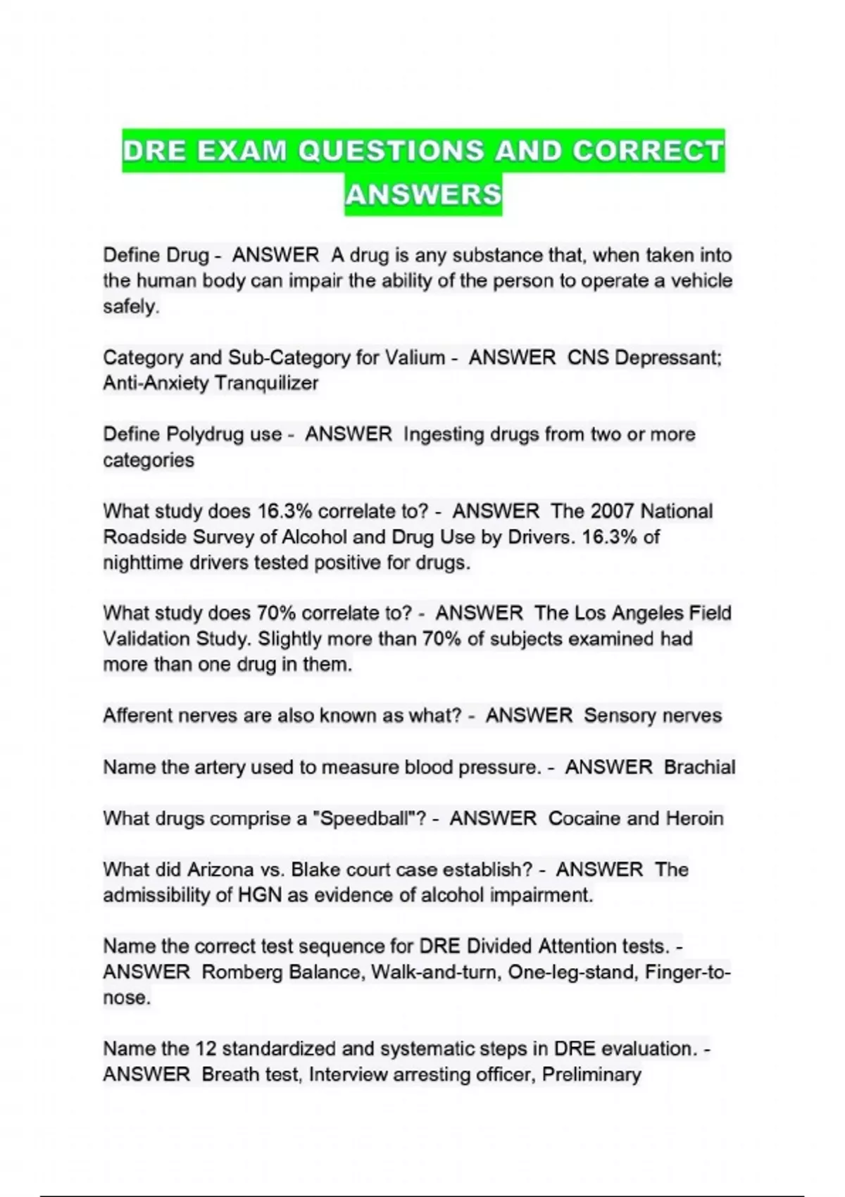 DRE EXAM QUESTIONS AND CORRECT ANSWERS...