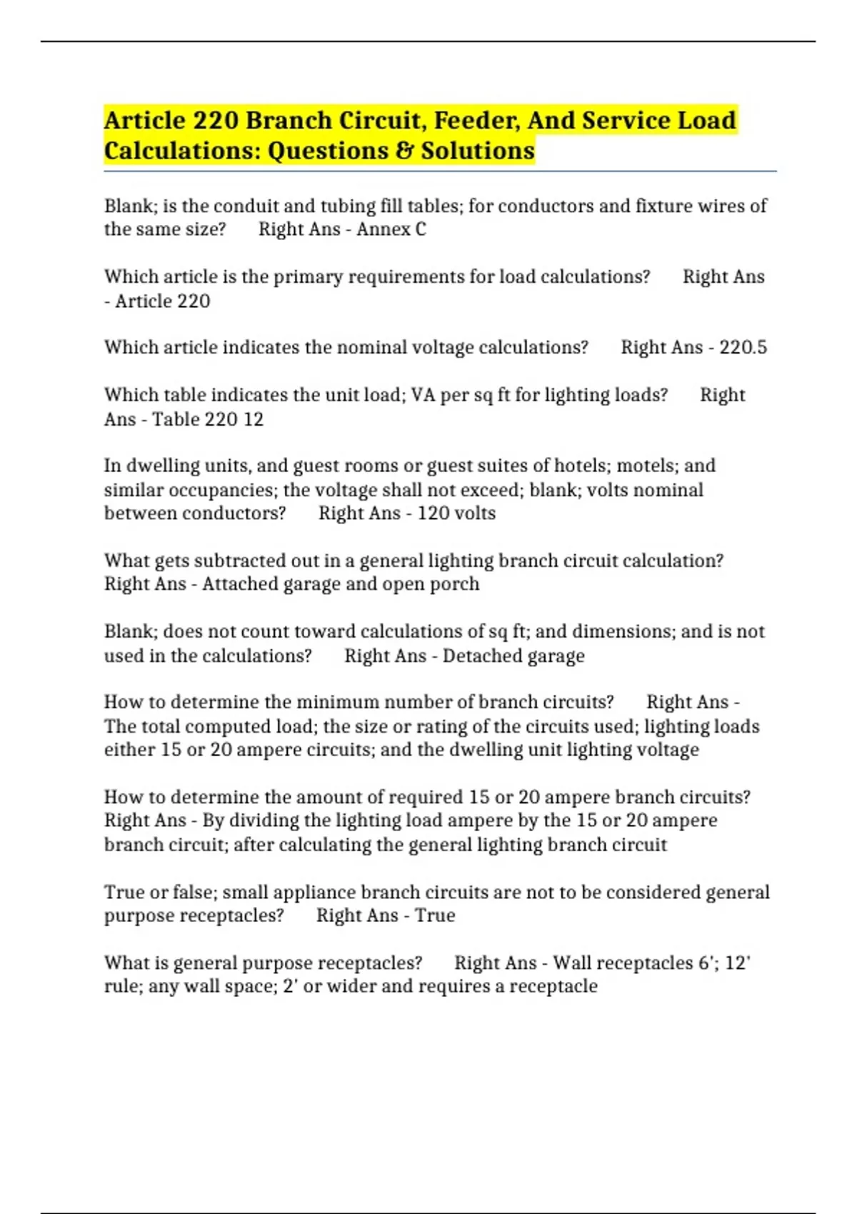 Which article is the primary requirements for load calculations? Right Ans