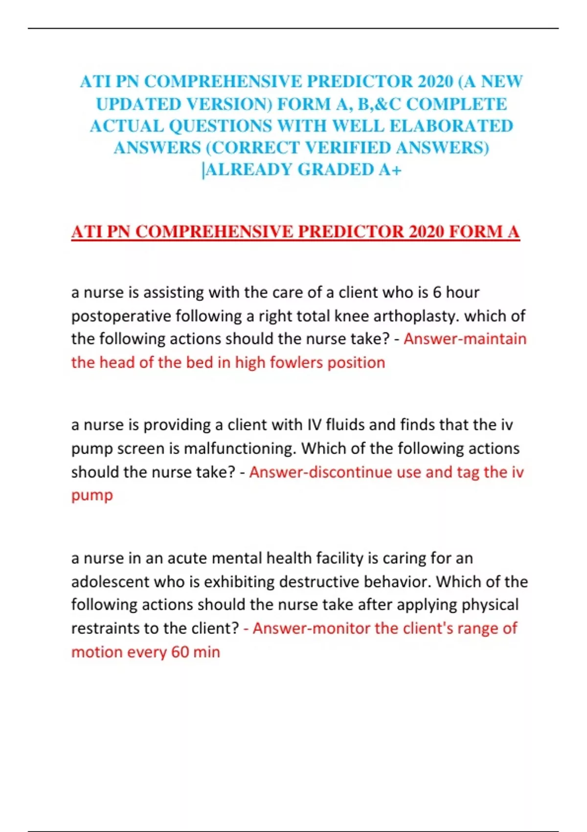 ATI PN COMPREHENSIVE PREDICTOR 2020 FORM A