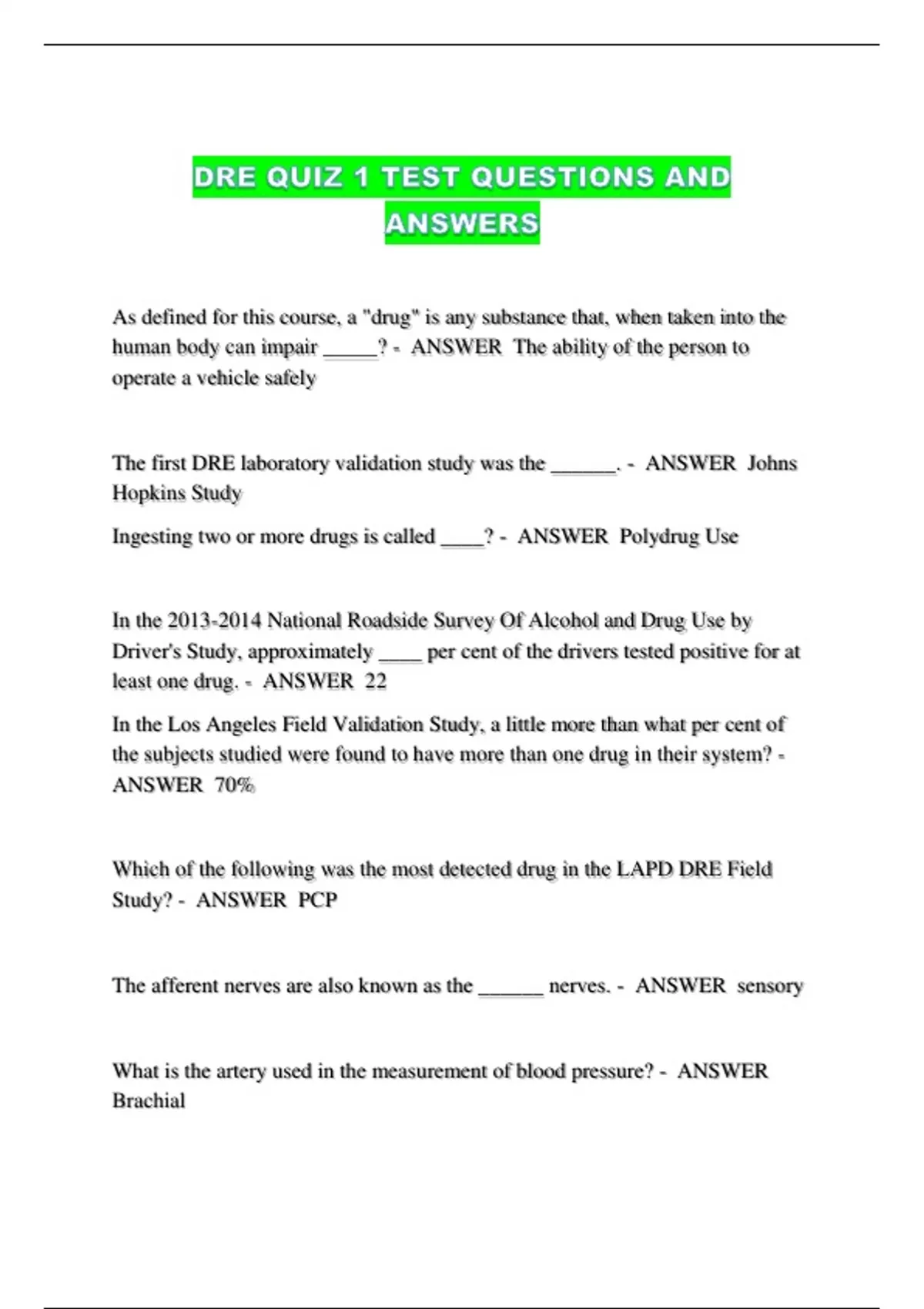 The first DRE laboratory validation study was the ______. - ANSWER Johns