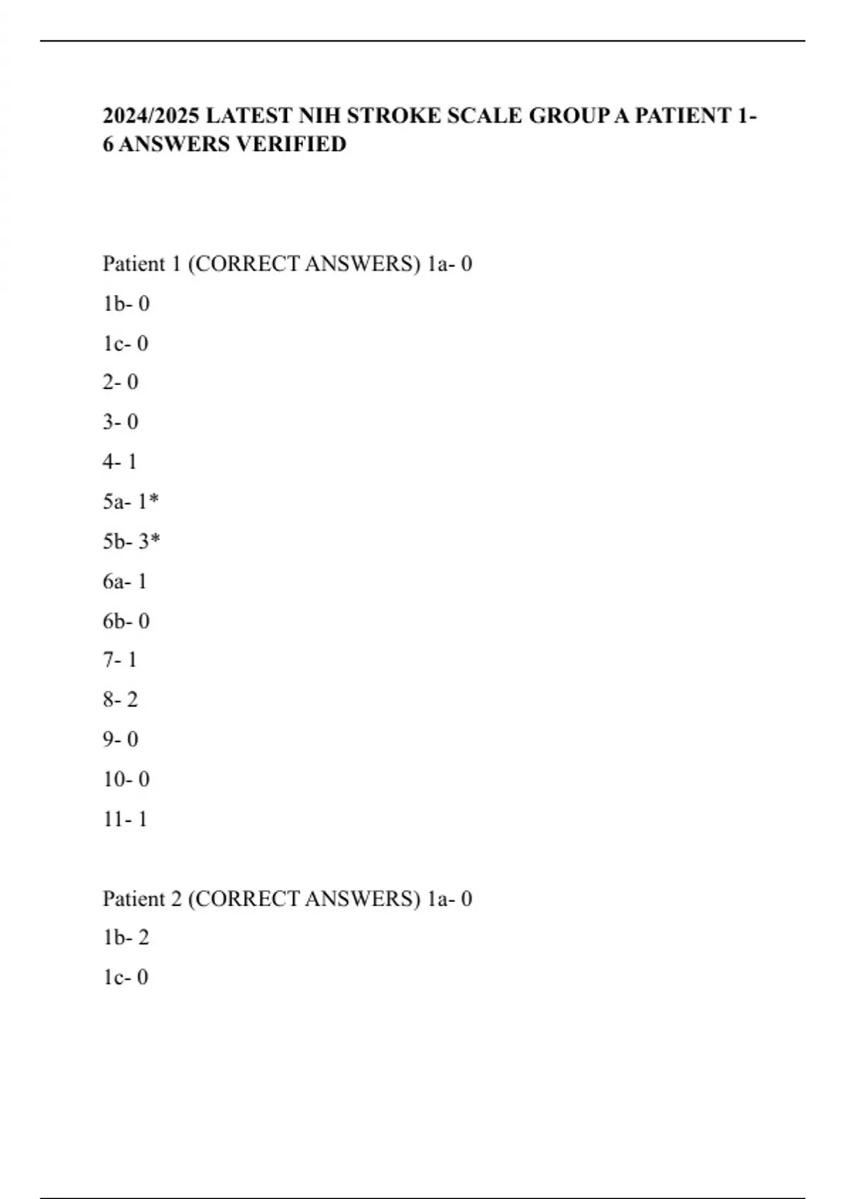 2024/2025 LATEST NIH STROKE SCALE GROUP A PATIENT 1-