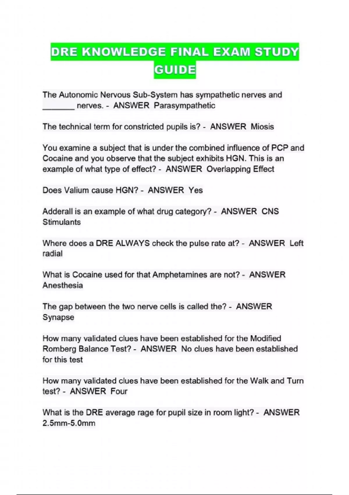 DRE KNOWLEDGE FINAL EXAM STUDY GUIDE...