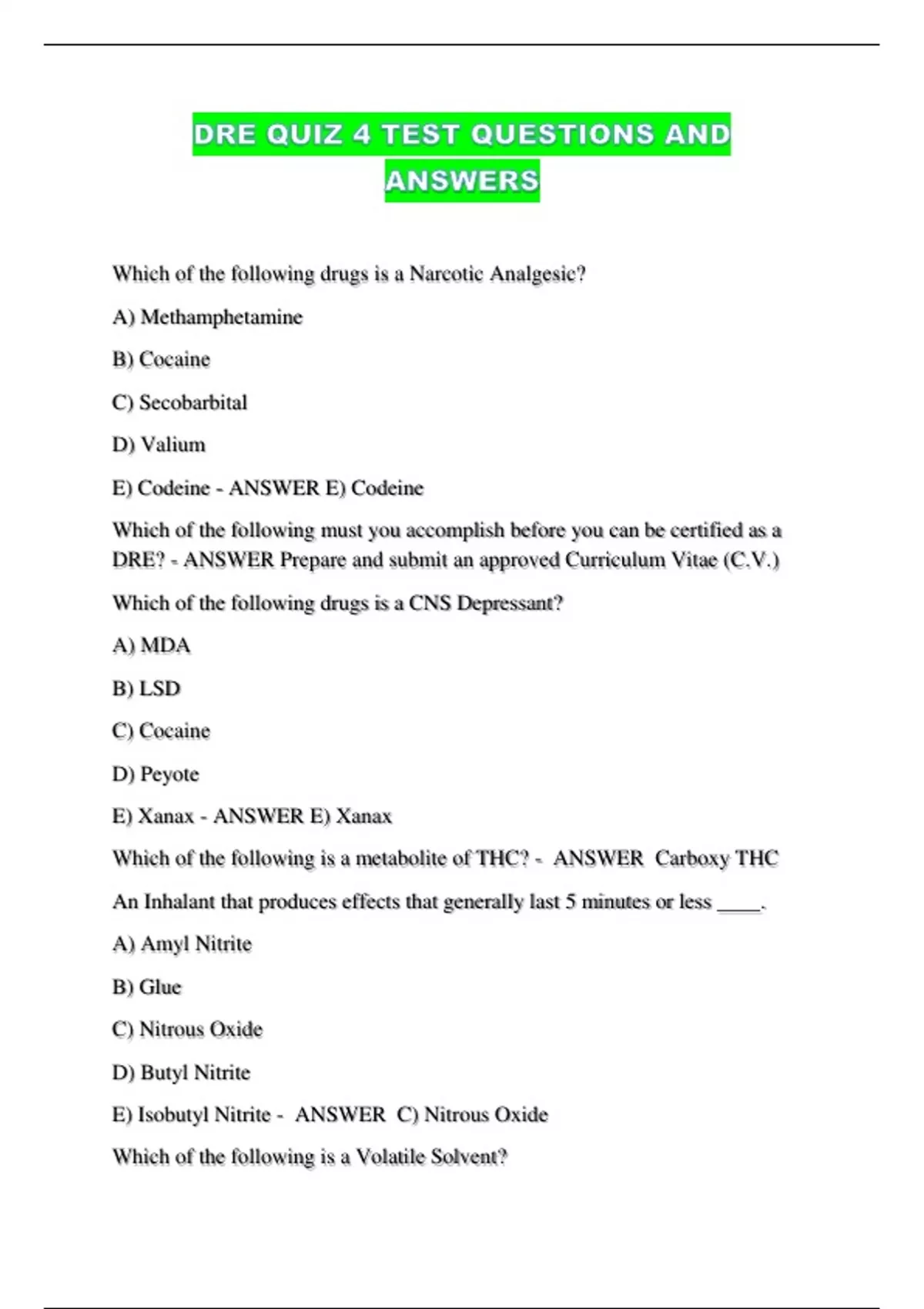 DRE? - ANSWER Prepare and submit an approved Curriculum Vitae (C.V.)