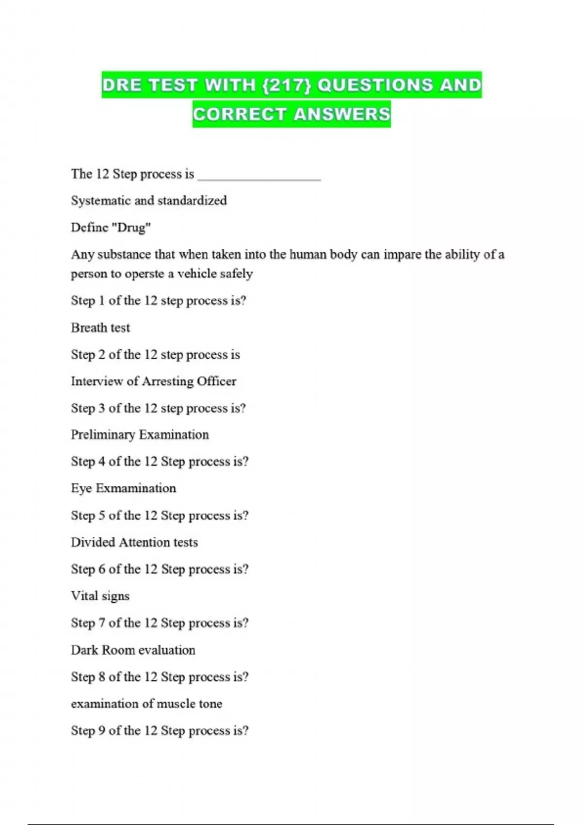 DRE QUIZ 5 TEST QUESTIONS AND ANSWERS