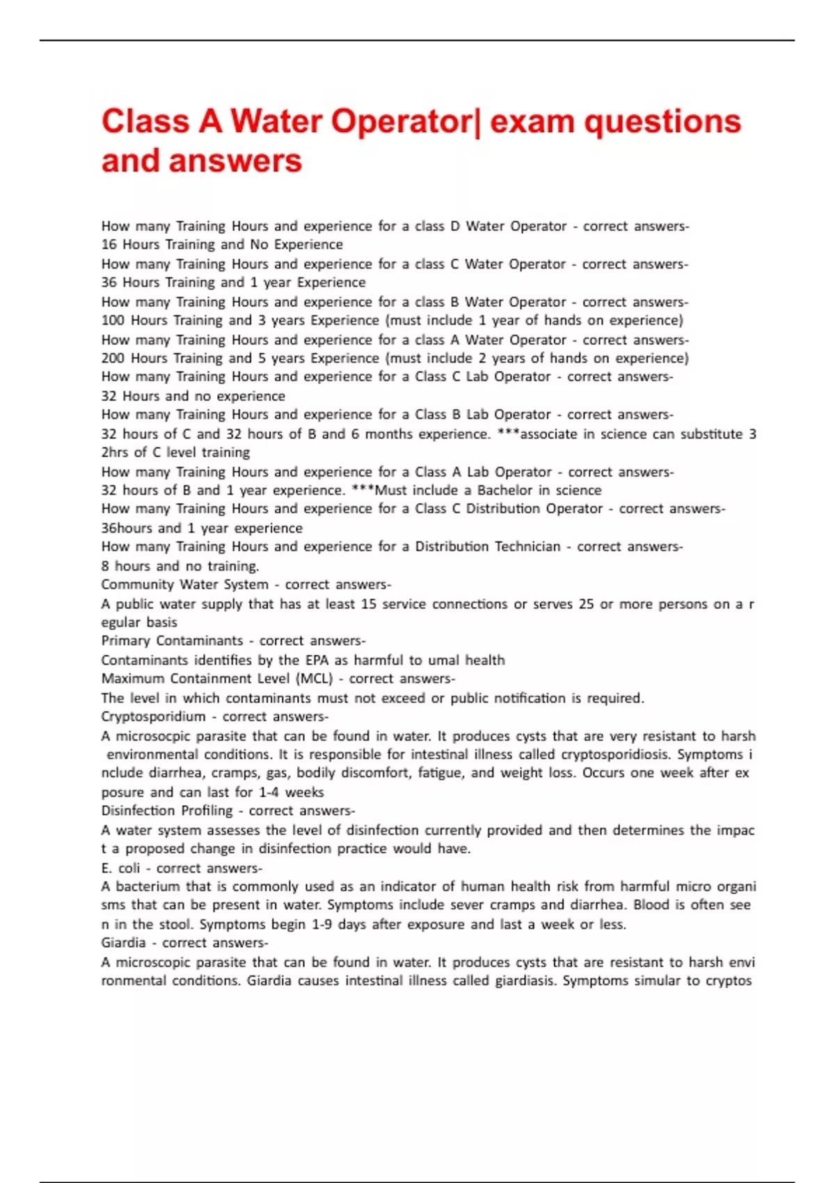 Class A Water Operator| exam questions and answersClass A Water Operator| exam questions and answersClass A Water Operator| exam questions and answersClass A Water Operator| exam questions and answersClass A Water Operator| exam questions and answersClass A Water Operator| exam questions and answers