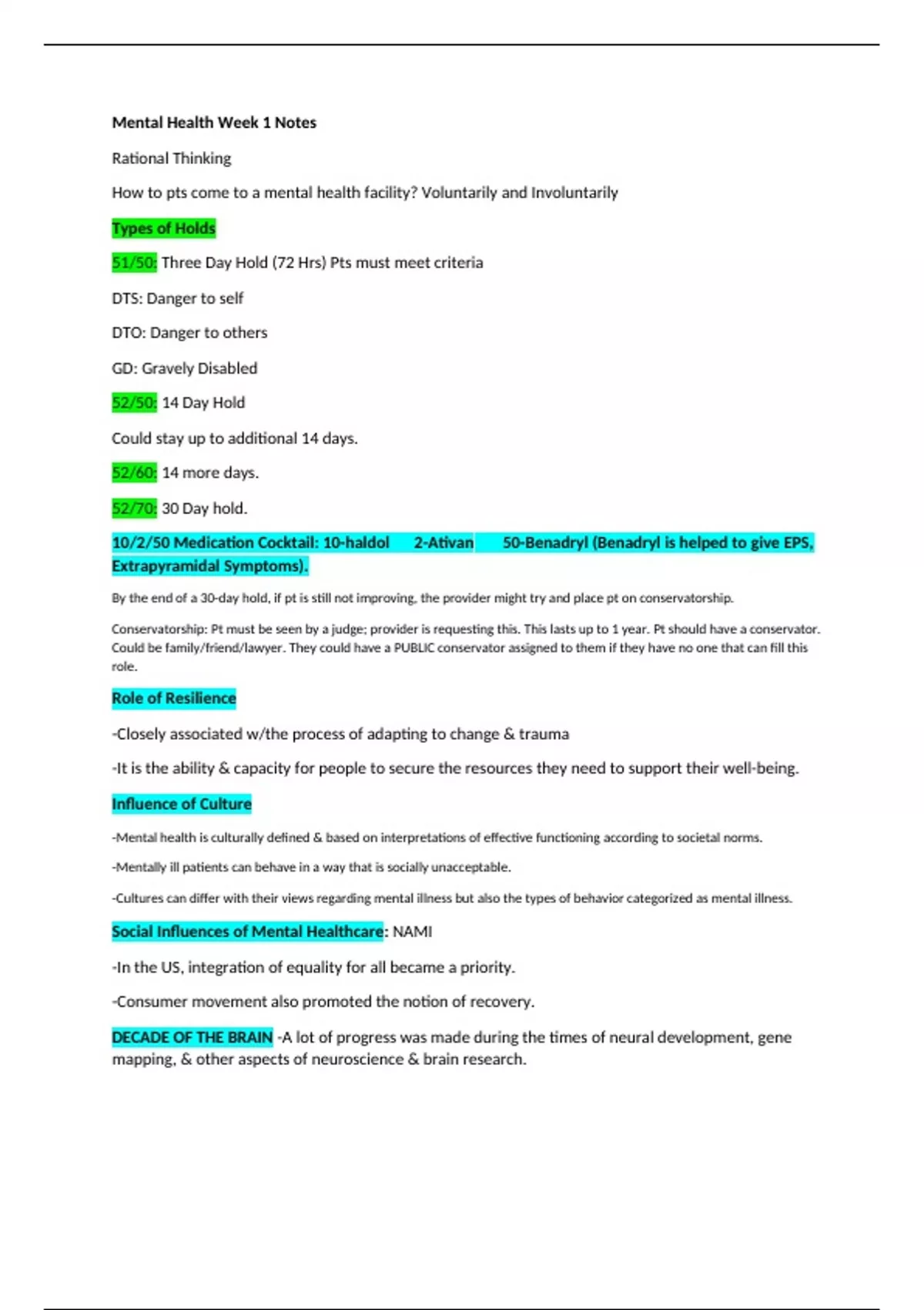 Mental Health Week 1 Notes