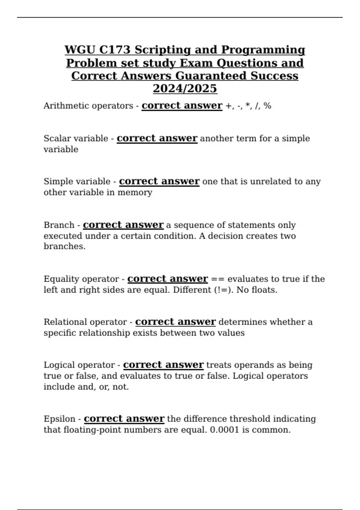 Correct Answers Guaranteed Success