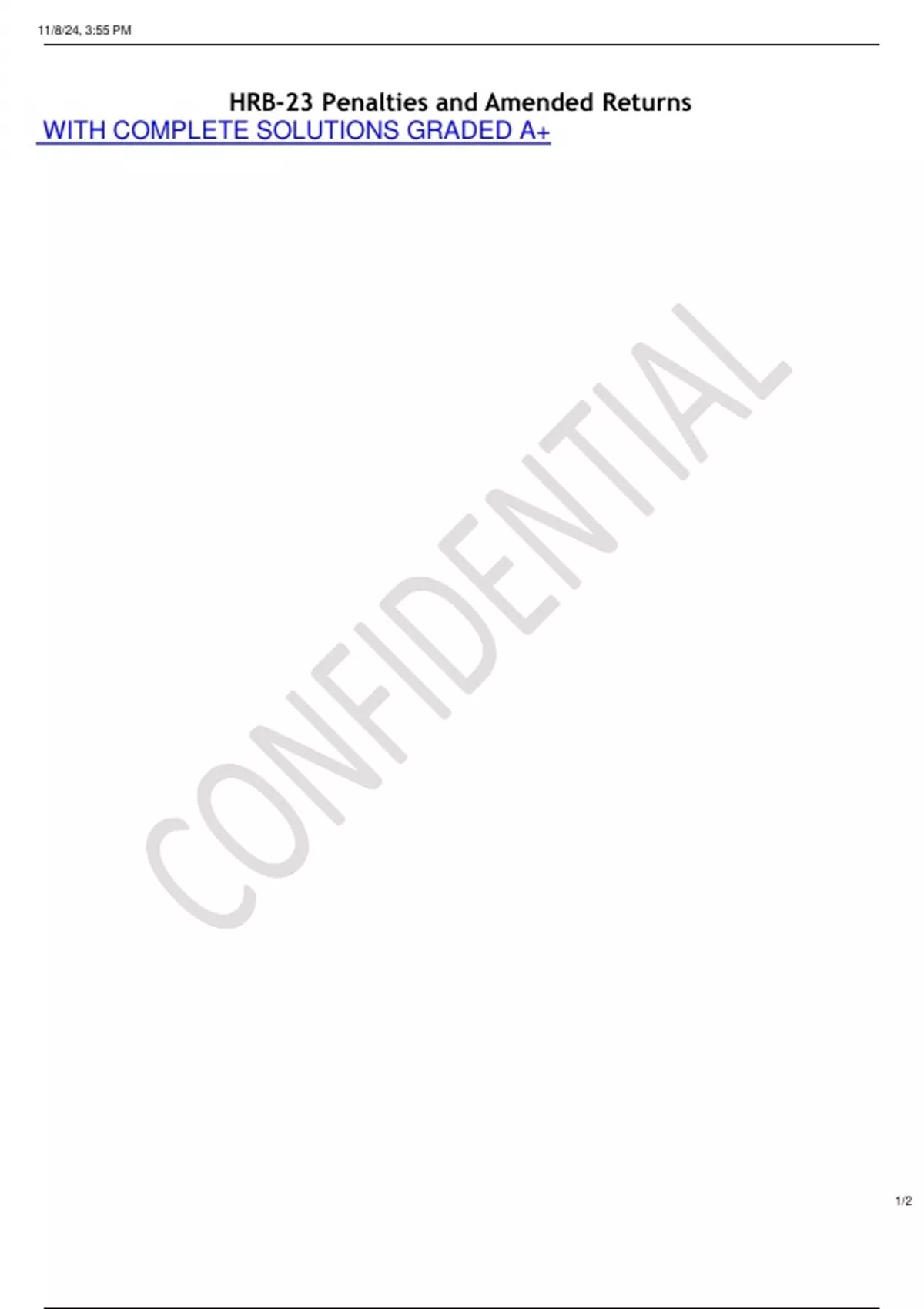HRB-23 Penalties and Amended Returns WITH COMPLETE SOLUTIONS GRADED A+
